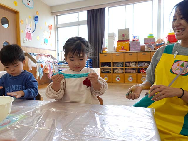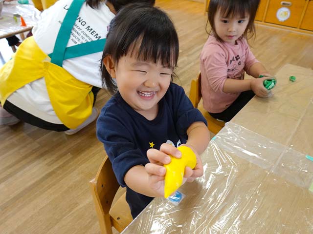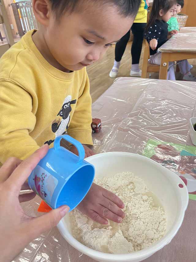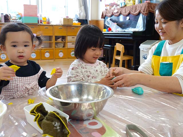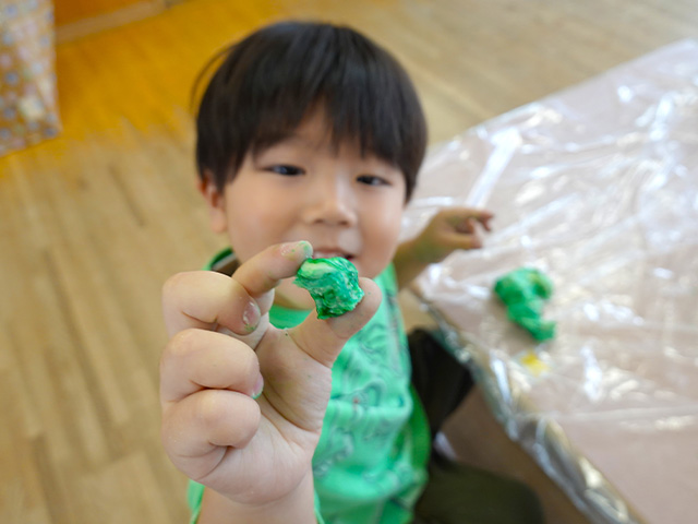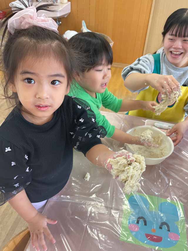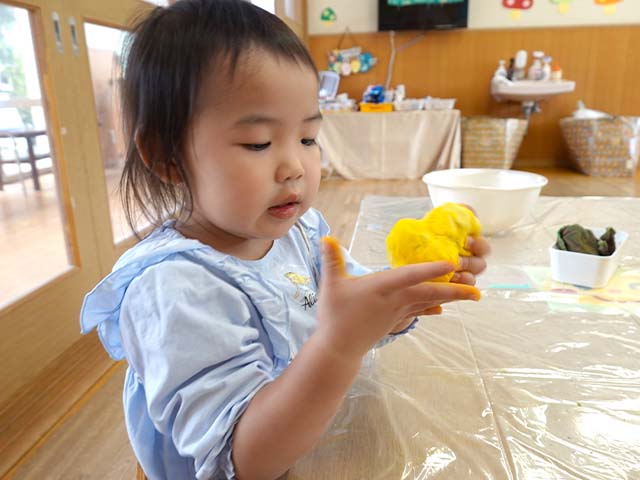 今日のれんげ組さんは、小麦粉粘土であそびました!