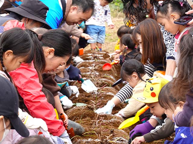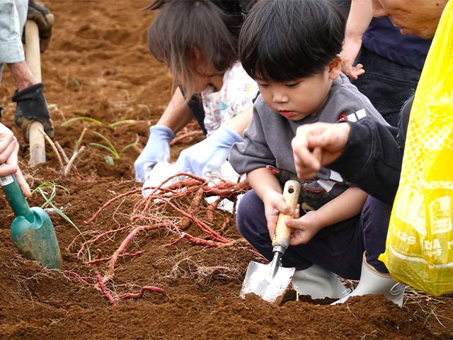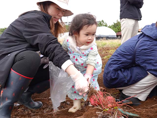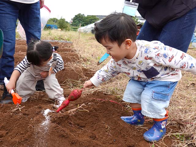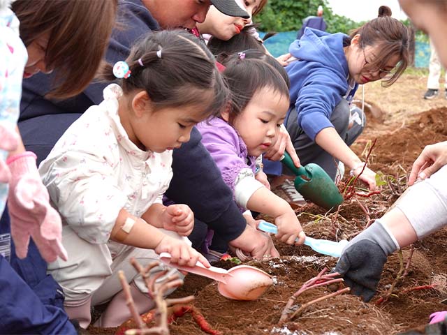 小さなお手手でお父さんお母さんと一緒に土をほりほり!