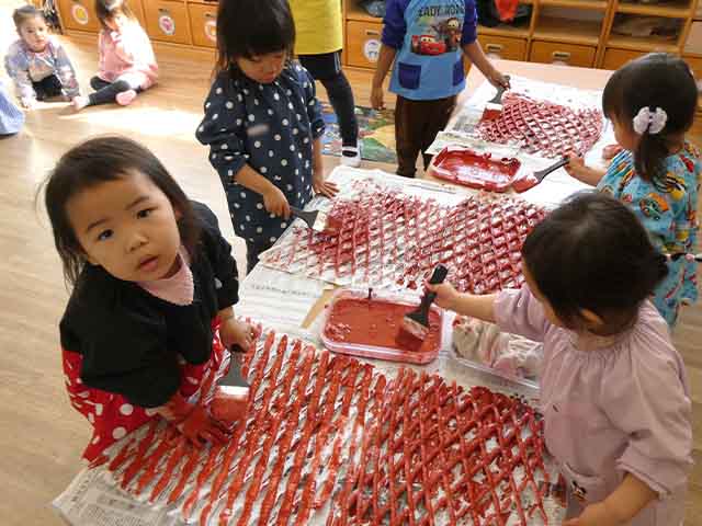みんなで作っている「はらぺこあおむし」もとってもよくできています🐛