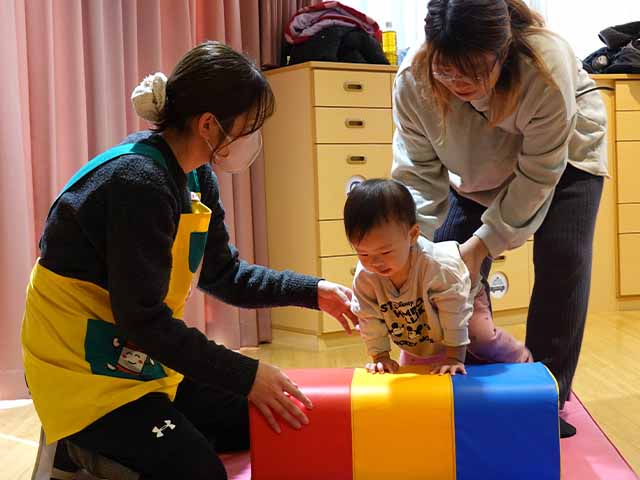 ちびっこのお友達は小さなお手手で揉み揉みしたり、引っ張ったり伸ばしたりして遊びましたよ~!