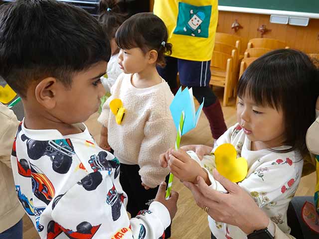 まずはいつも通り園歌を歌って、朝のうたも歌って、朝のご挨拶もしましたよ~!