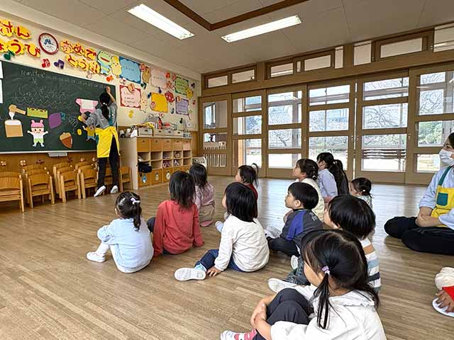 みんなで体を動かした後は先生のお友達のクマさん登場🐻