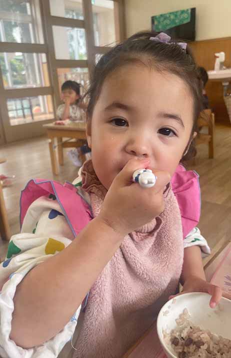 ちゃんと先生の言うことを聞いて、ゆっくりよく噛んで食べていましたね(´~`)モグモグ