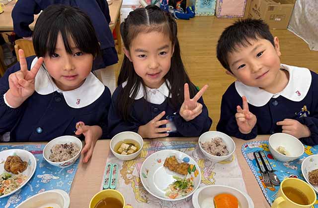 本園の自園給食は子ども達の体のことを考えて、ユネスコの無形文化財に登録された「和食」を中心としたものになっています。
