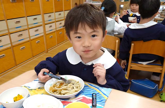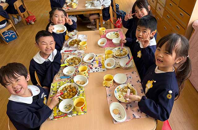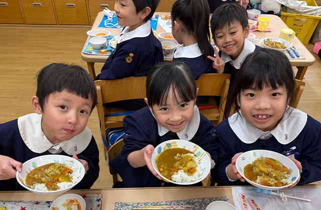 幼稚園専門のお弁当屋さんによる給食弁当を保護者の方の希望選択制で注文することもできます。