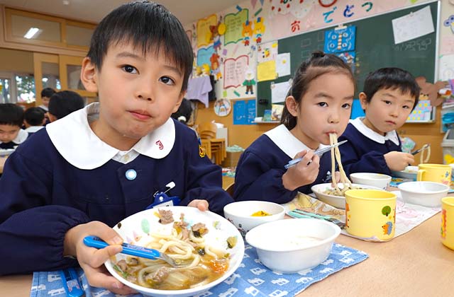 本園の自園給食は子ども達の体のことを考えて、ユネスコの無形文化財に登録された「和食」を中心としたものになっています。