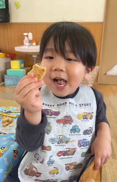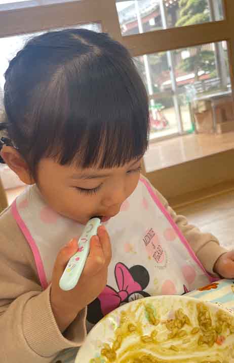 ちゃんと先生の言うことを聞いて、ゆっくりよく噛んで食べていましたね(´~`)モグモグ