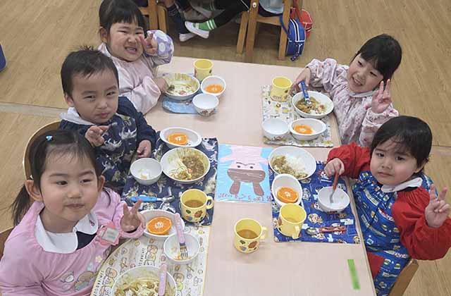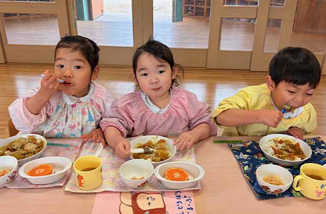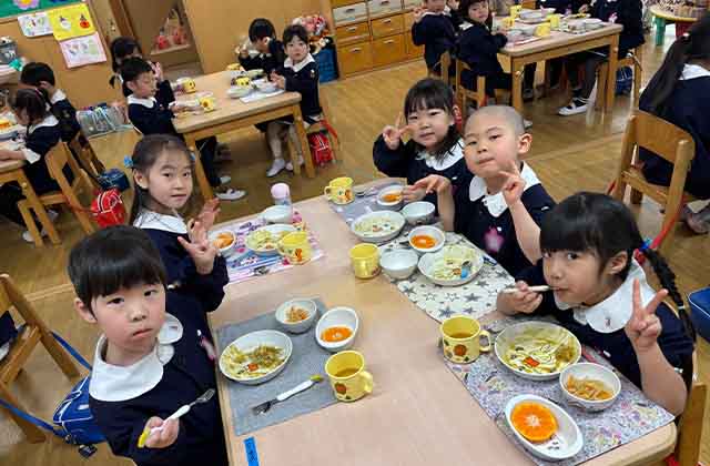 食事の基本は仏教からきています。それぞれの食材に感謝するとともに、合わせて食事のマナーや作法なども一緒に身につけさせていきたいと考えています。