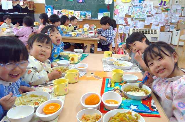 下処理の済んだ食材を温めなおしただけの給食や、レトルト食材を大型レンジでチンしたものとは違う、本物の食事を「食育」という考えの下、提供していく本園の自園給食「オーガニックレストランじょうこうじ」をどうかお楽しみください。