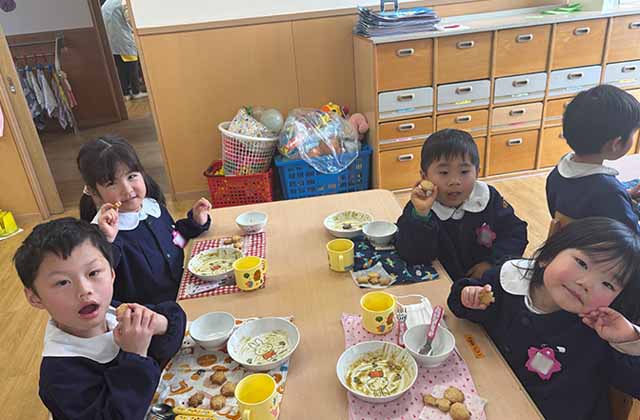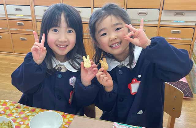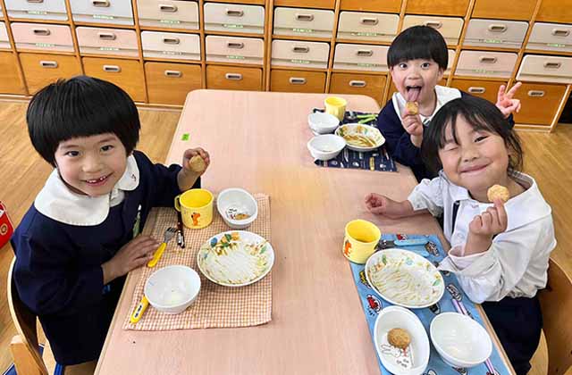 浄光寺幼稚園は食育に力を入れているので、自分で作ったものを食べる機会は多いですよ~。- 2018年11月06日
