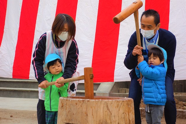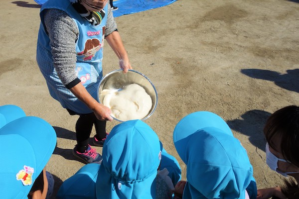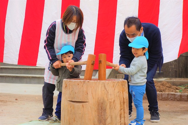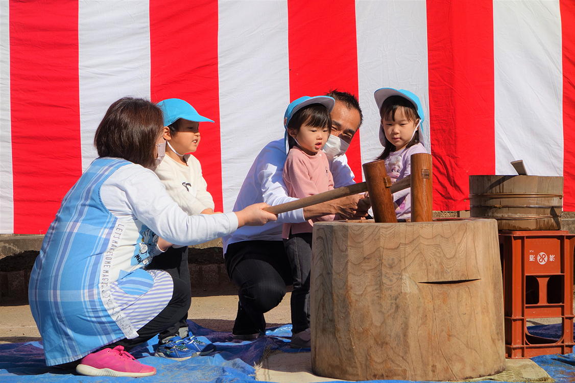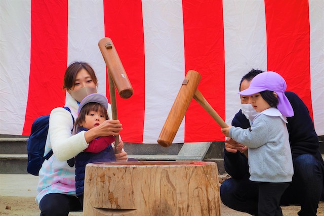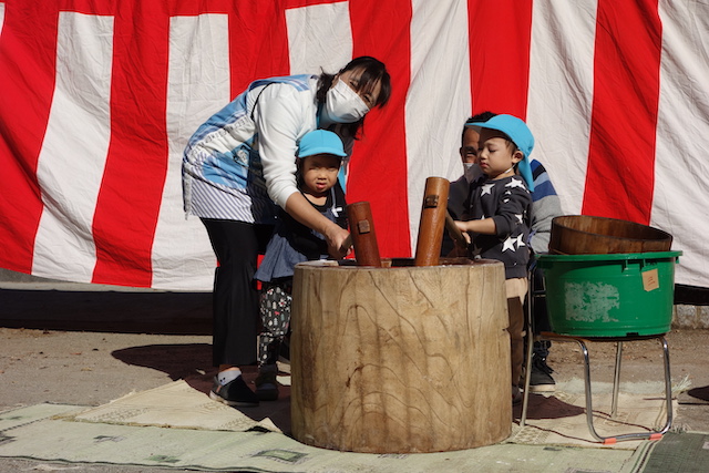 ヒカリのお友達も幼稚園に遊びに来て、もちつき大会に参加しました。
