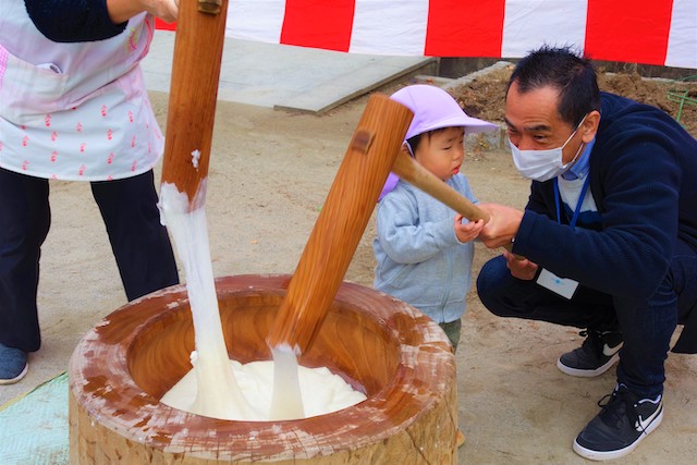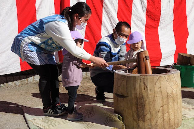 小さな体で頑張って「よいしょ~」とおもちをつきました。