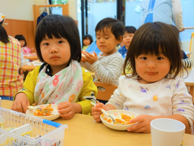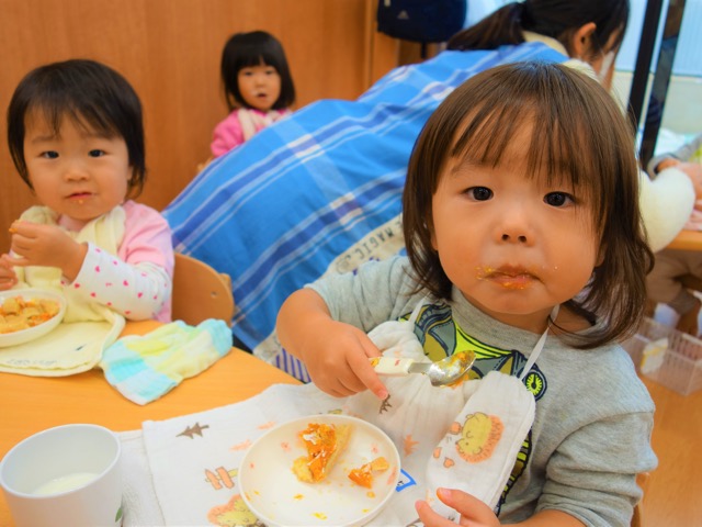 今日は誕生日会があったので、おやつはかぼちゃのケーキでした~!
