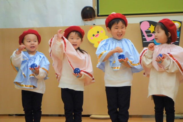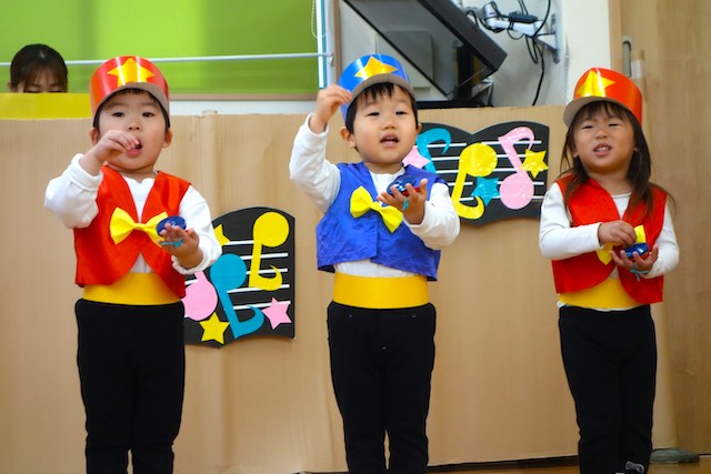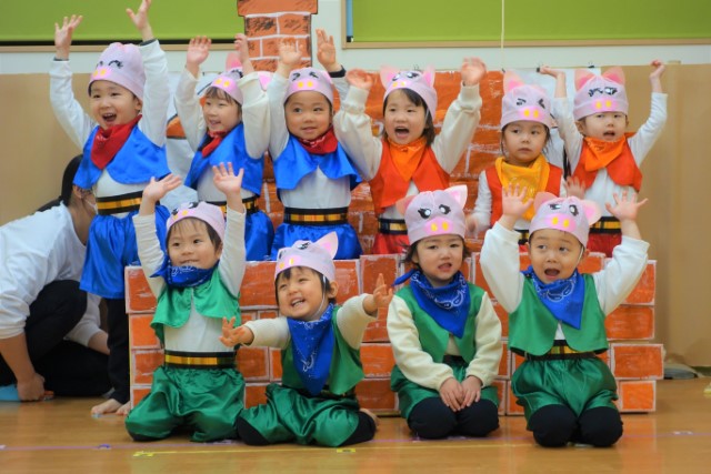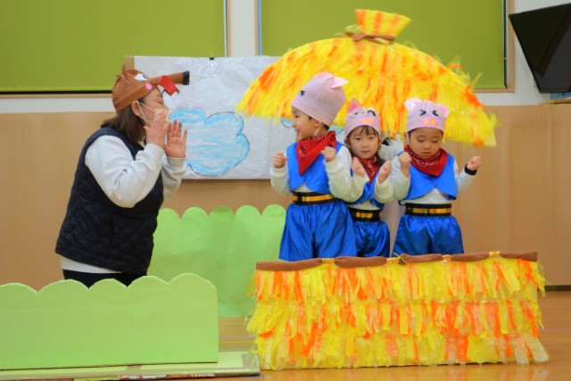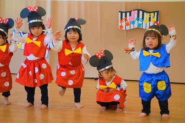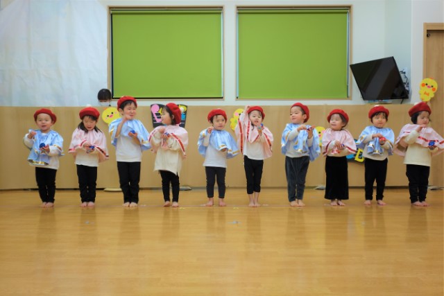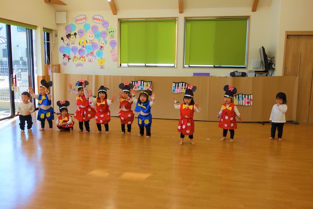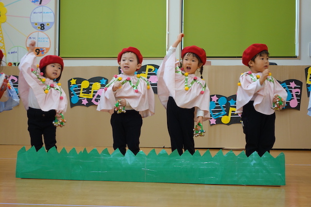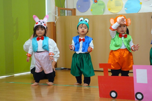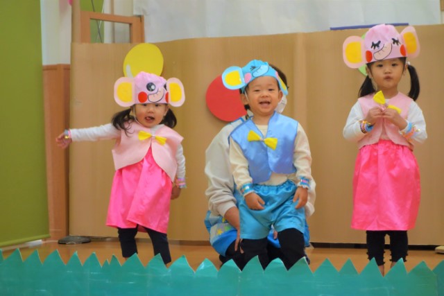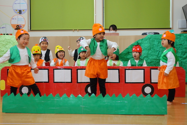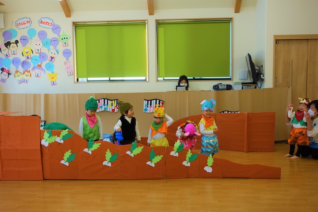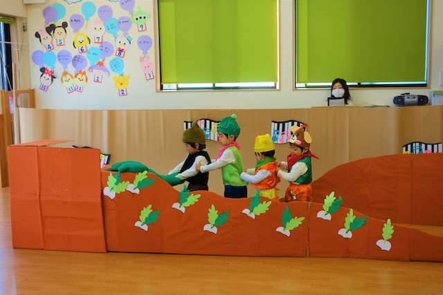 そのあとはふじ組さんによる遊戯「ミッキーマウスマーチ」、ゆり組さんによる劇「大きなかぶ」を一生懸命演じました。