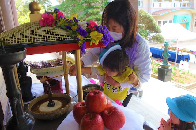 ヒカリのお友達が幼稚園に来て灌仏をしましたよ~