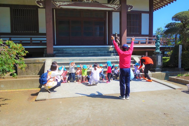 今日は浄光寺幼稚園の広いお庭で体操をしました。