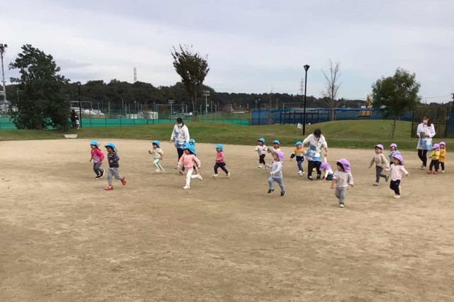 この日のヒカリの子ども達は、幼稚園バスに乗ってJcomのグランドへ行ってきました!