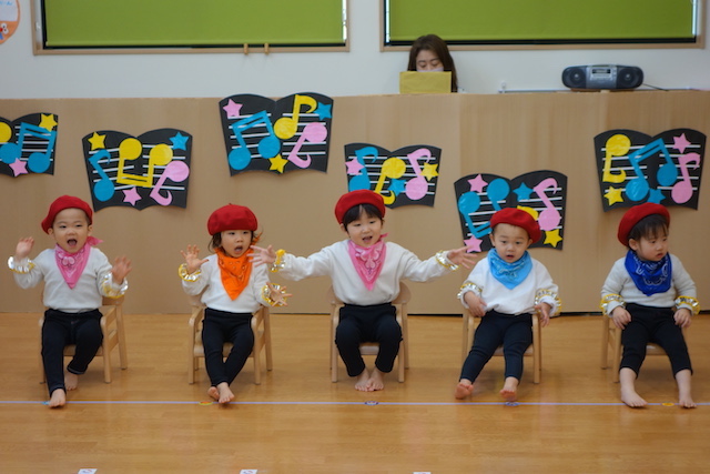 子ども達は頑張って練習してきた表現遊びやリズム遊び、遊戯、劇あそびを披露しました。