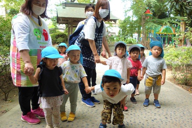 今日は保育園を出て浄光寺幼稚園のお庭へ!