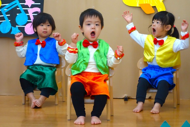 子ども達は頑張って練習してきた表現遊びやリズム遊び、遊戯、劇を披露しました。