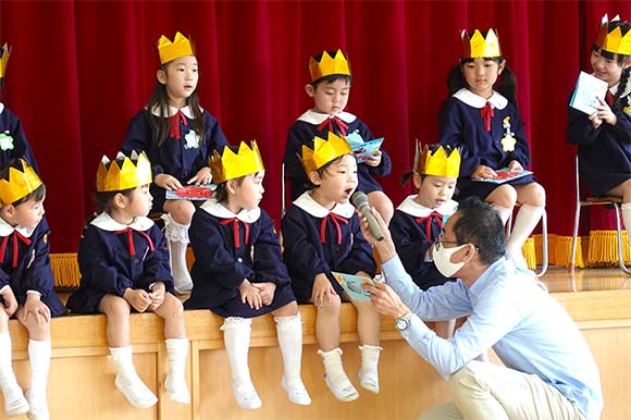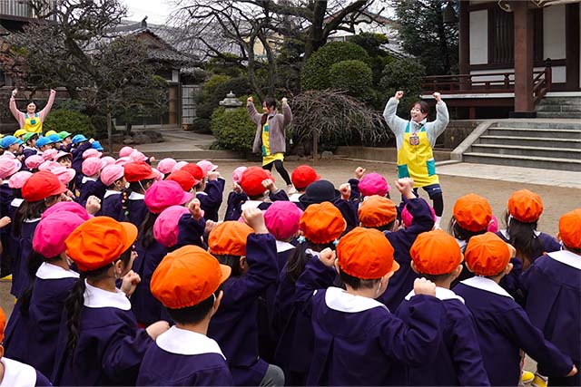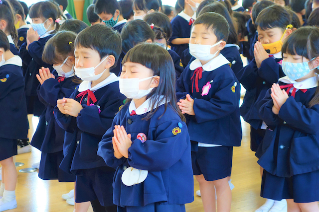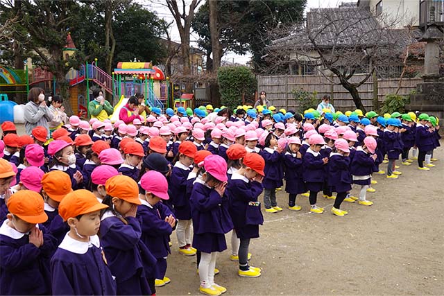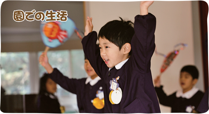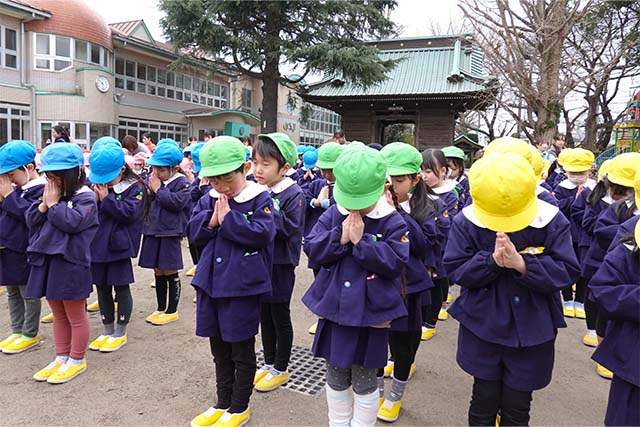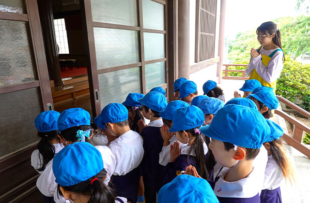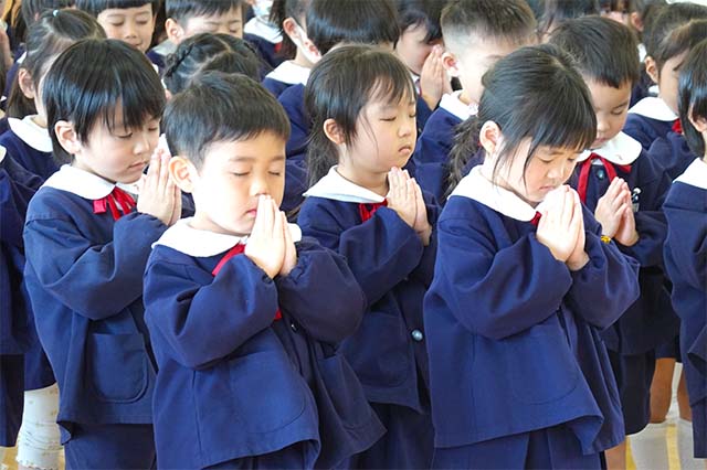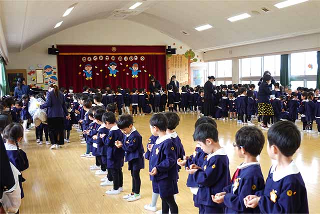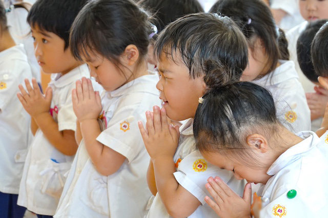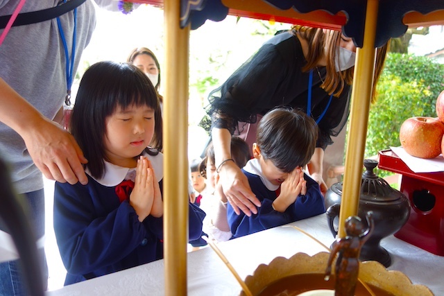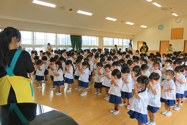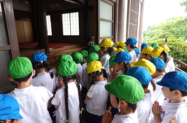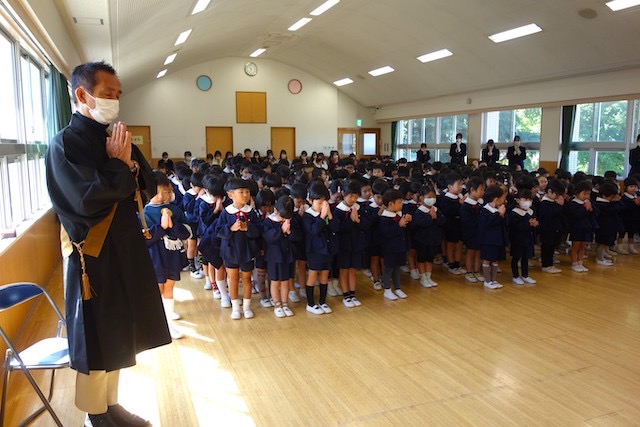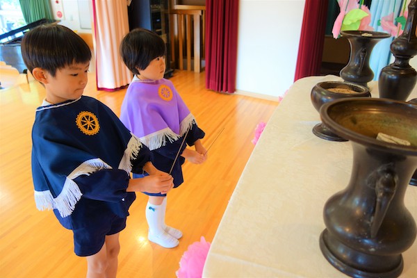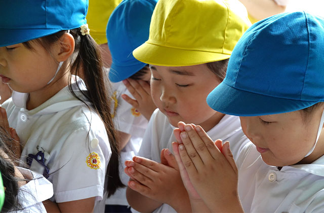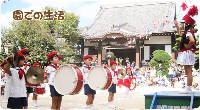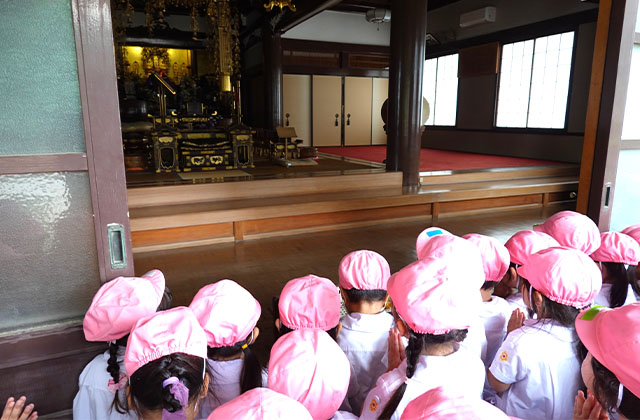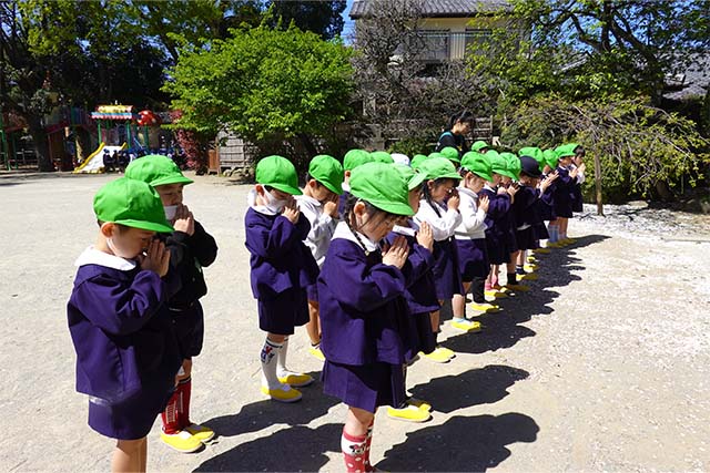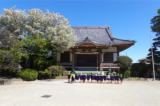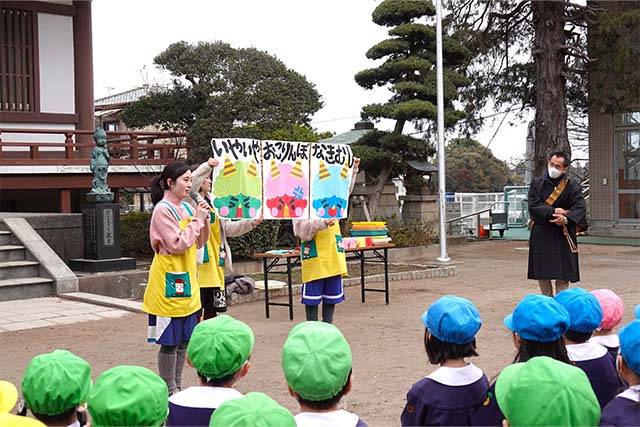 - 全園児で参加する唯一の仏教行事で日蓮聖人の教えから「生きる力」を養っていきます。