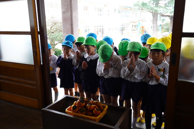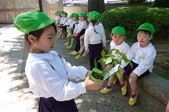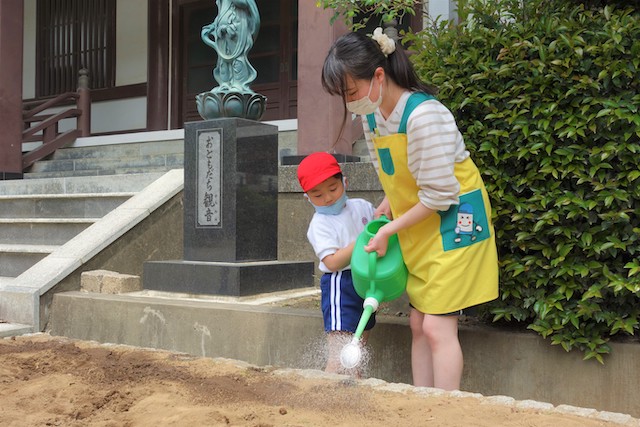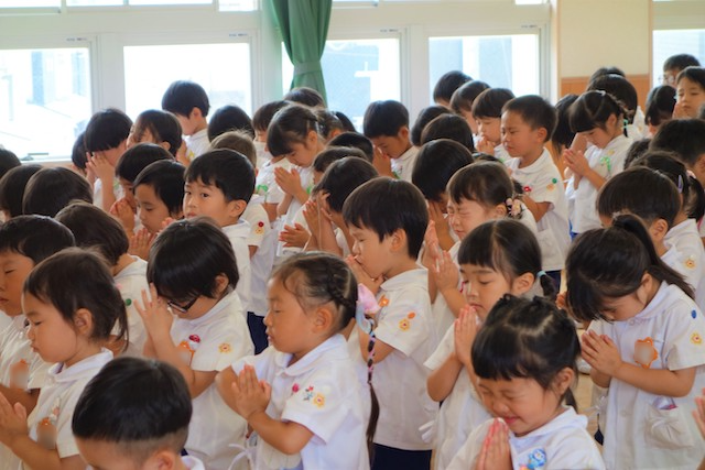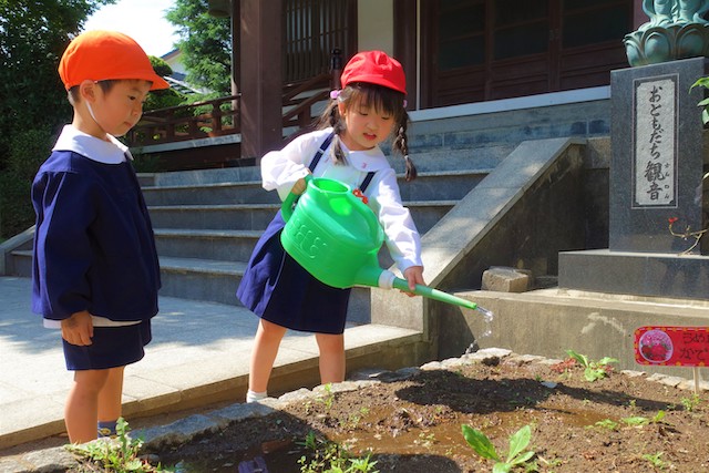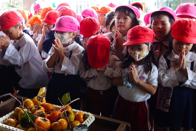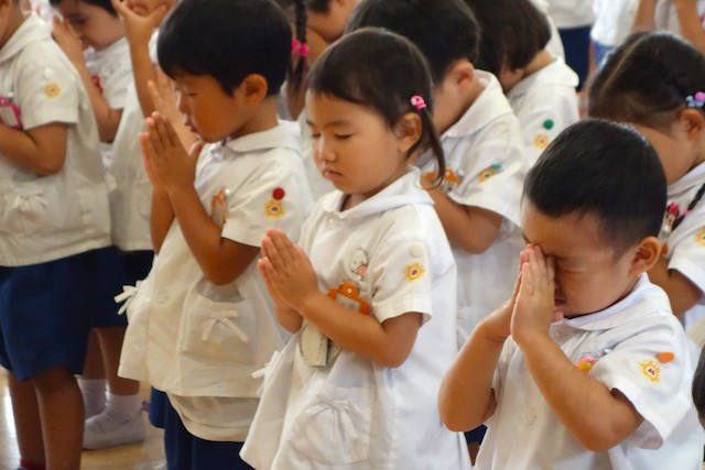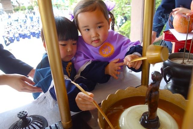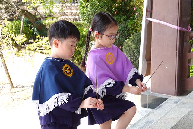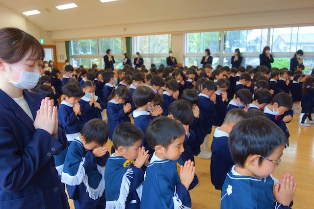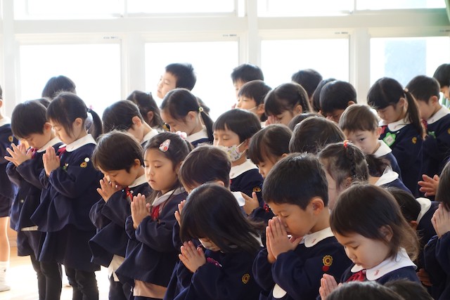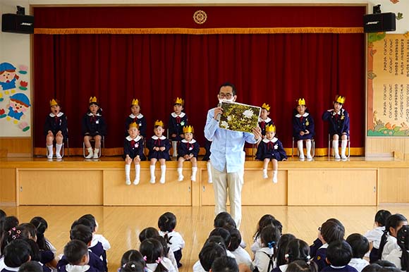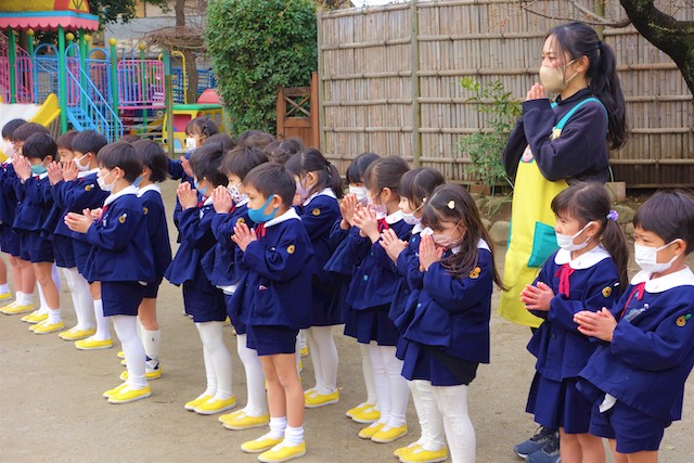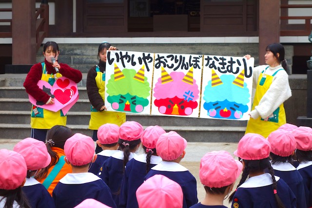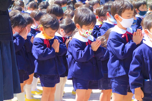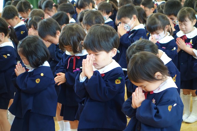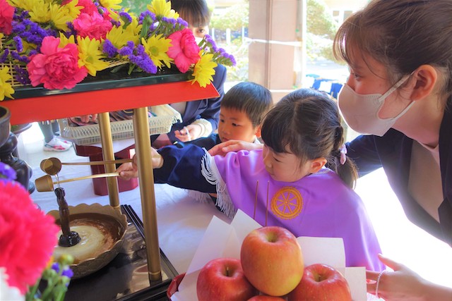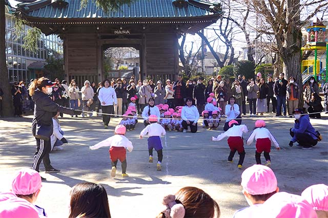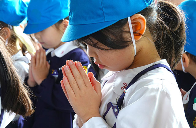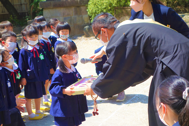 - 全園児で参加する唯一の仏教行事で日蓮聖人の教えから「生きる力」を養っていきます。