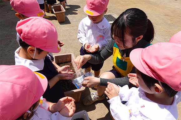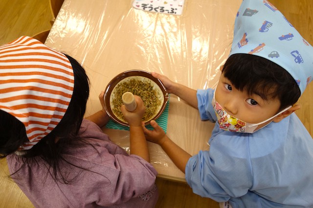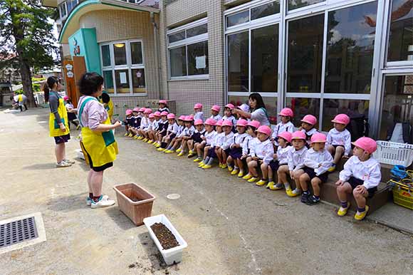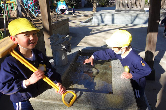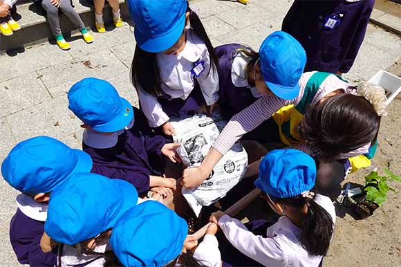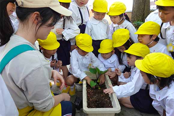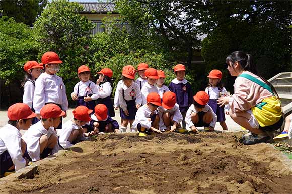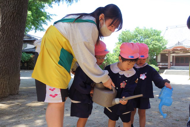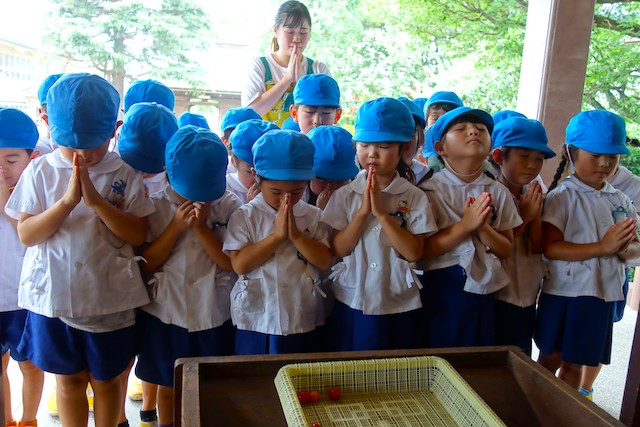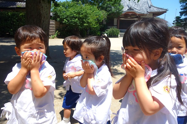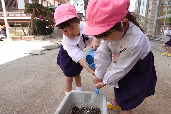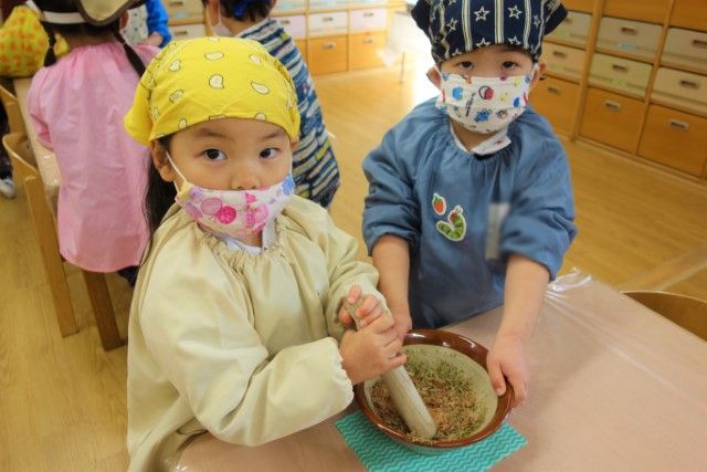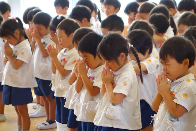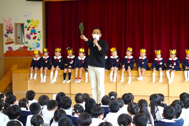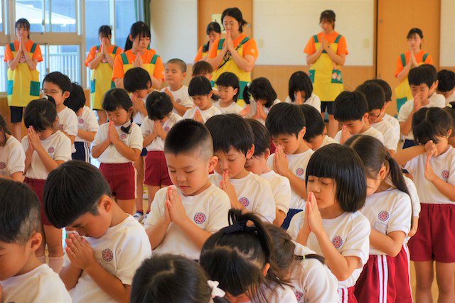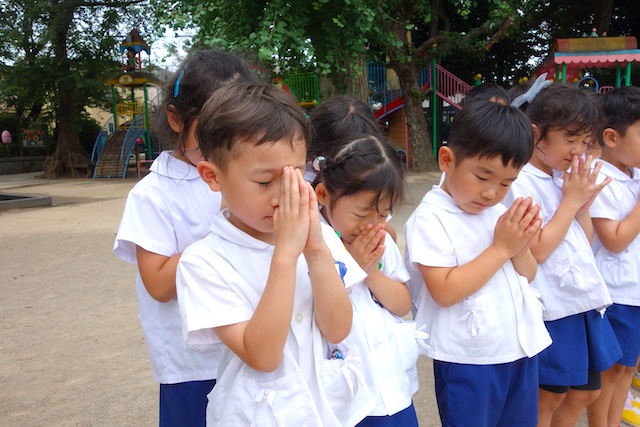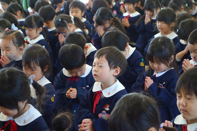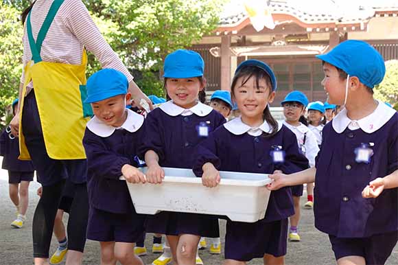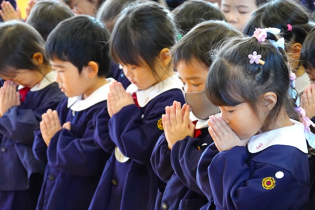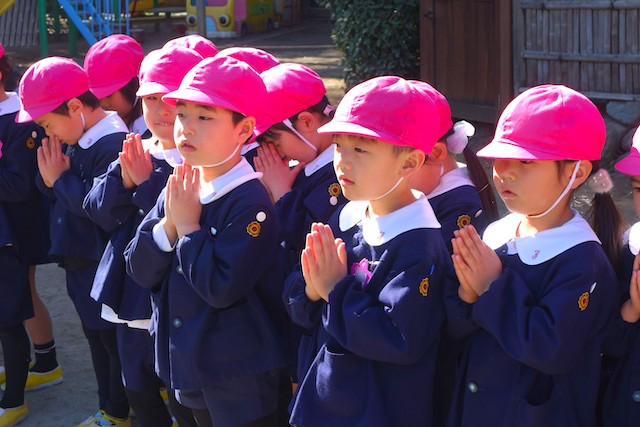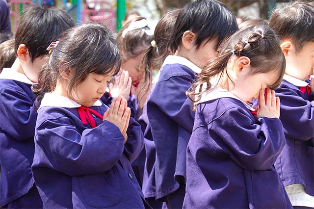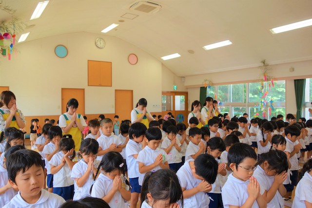 - 全園児で参加する唯一の仏教行事で日蓮聖人の教えから「生きる力」を養っていきます。