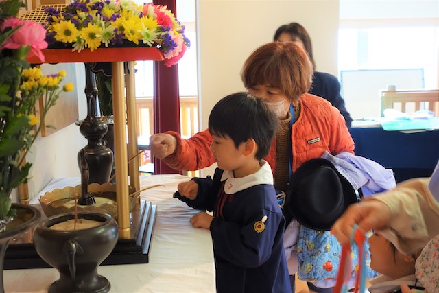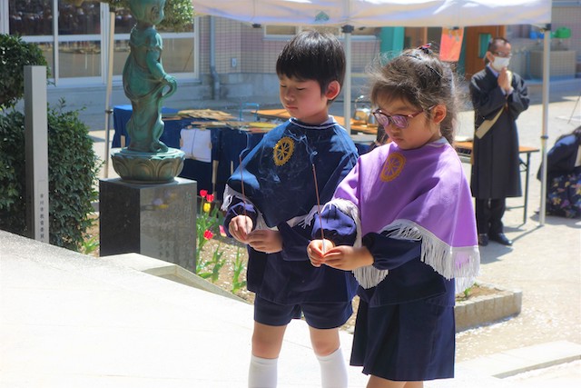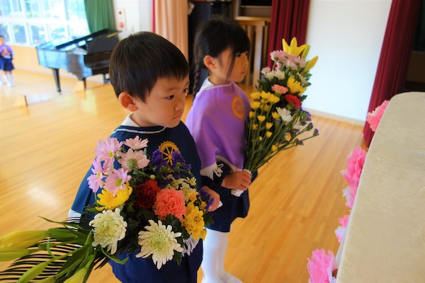 今日は浄光寺幼稚園で行われる2つの仏教行事の内の1つ、お会式が行われました。