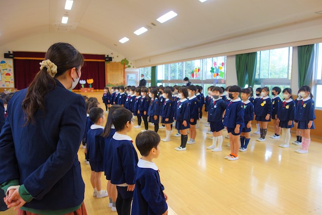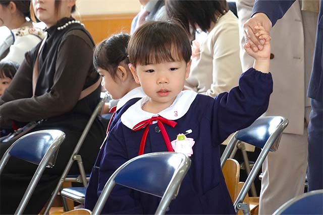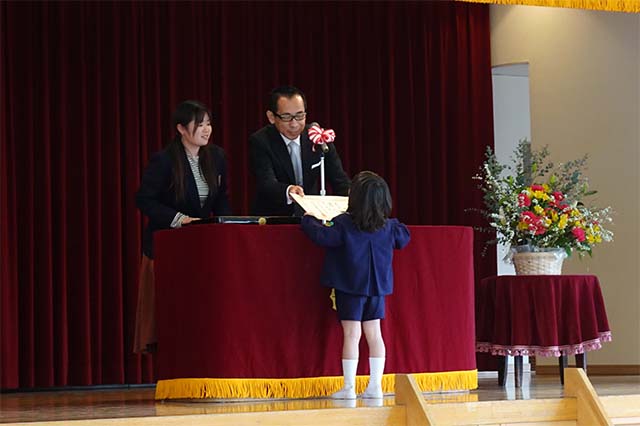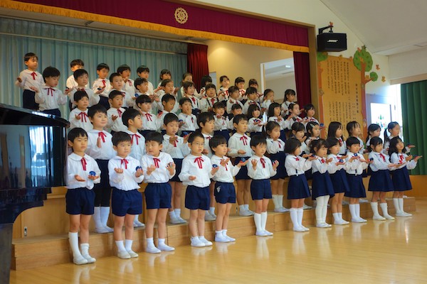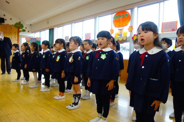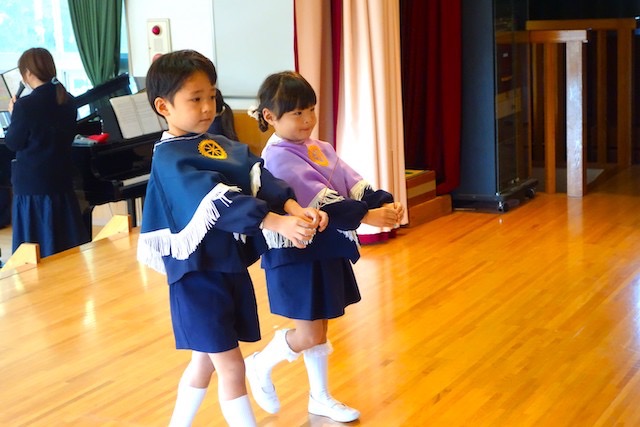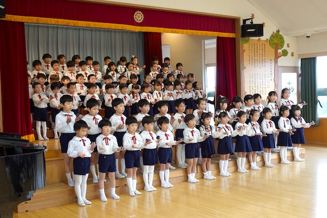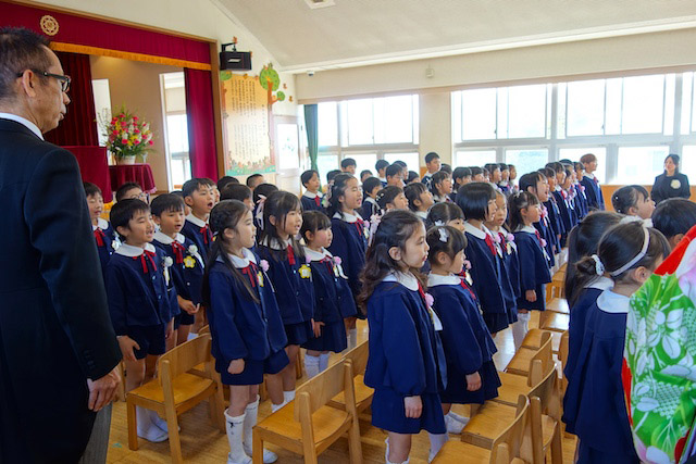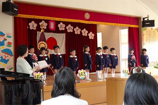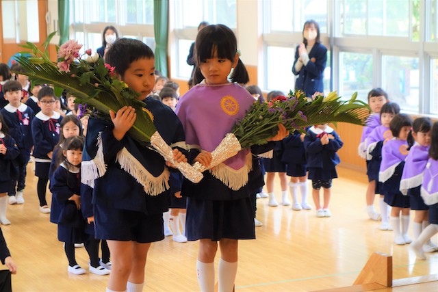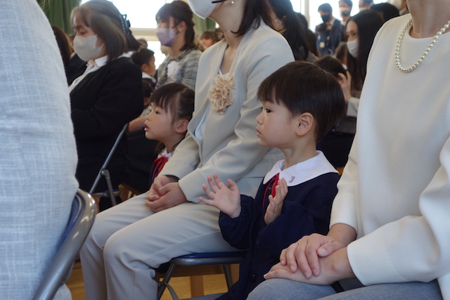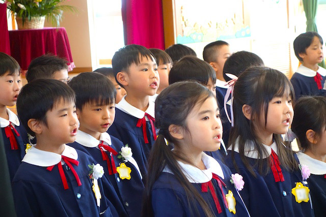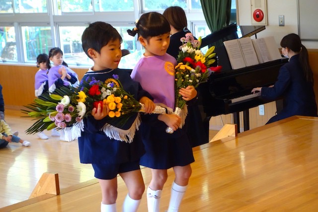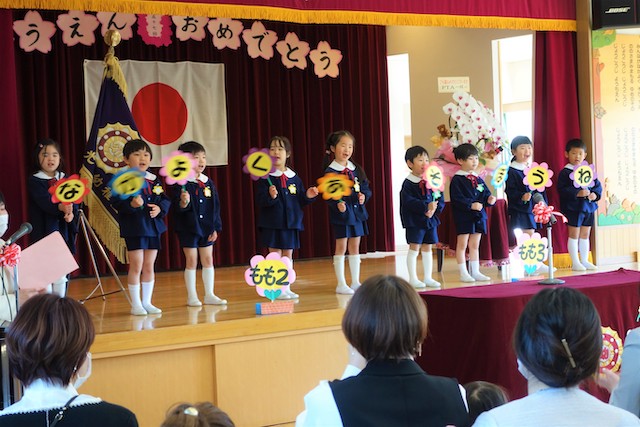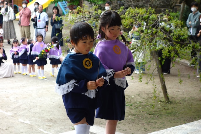 お別れの歌や言葉を聞いてるととても寂しいですが、これから小学校へ巣立つ締めくくりとして胸をはって式に参加します。
