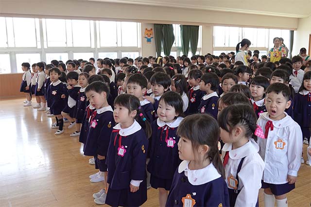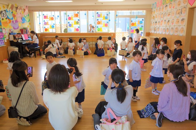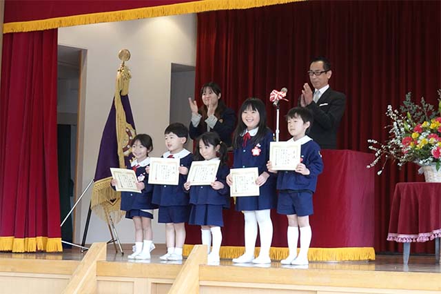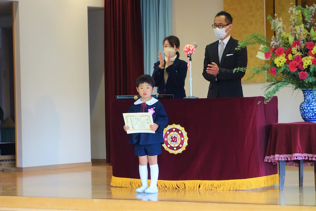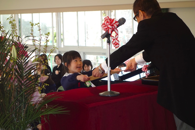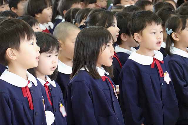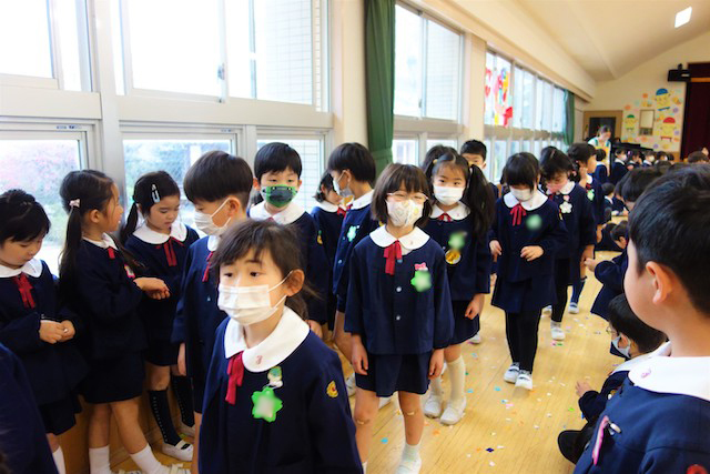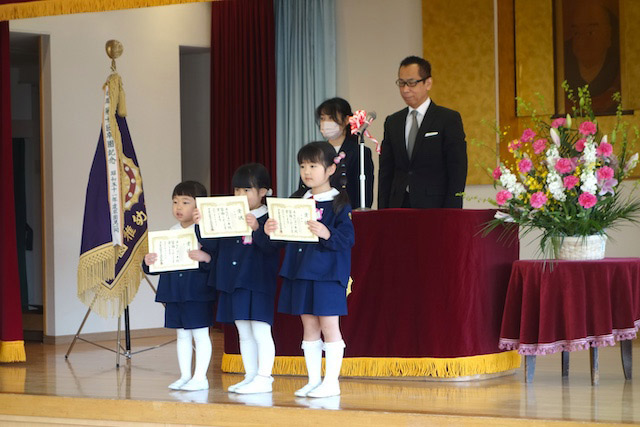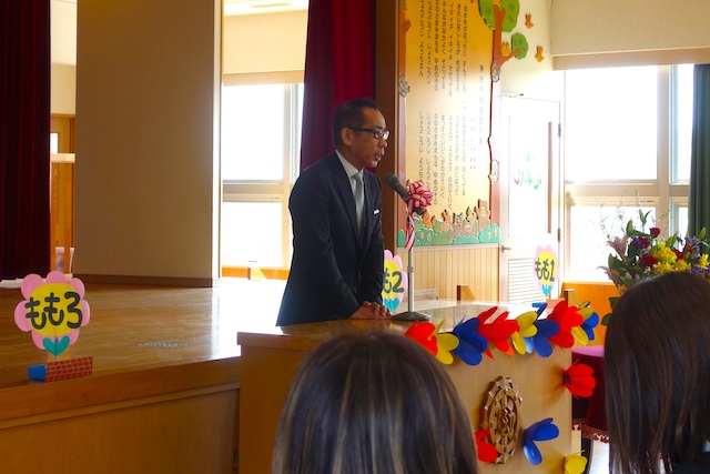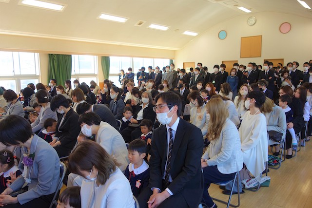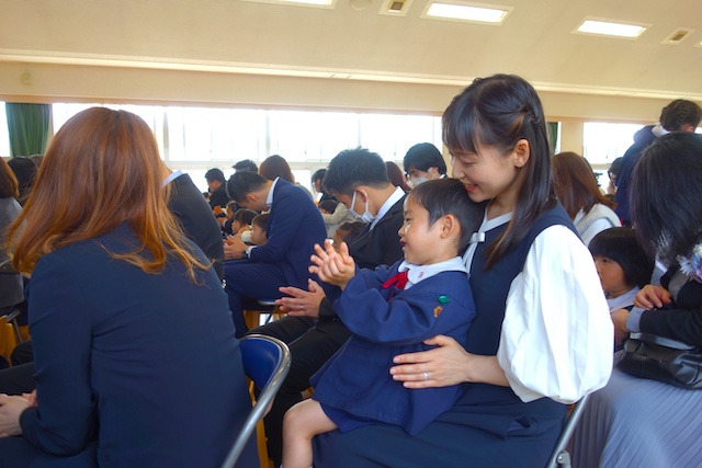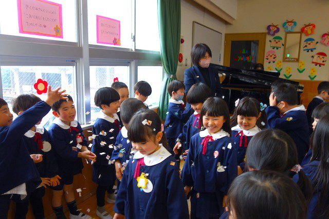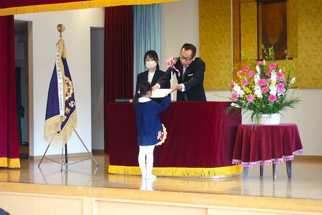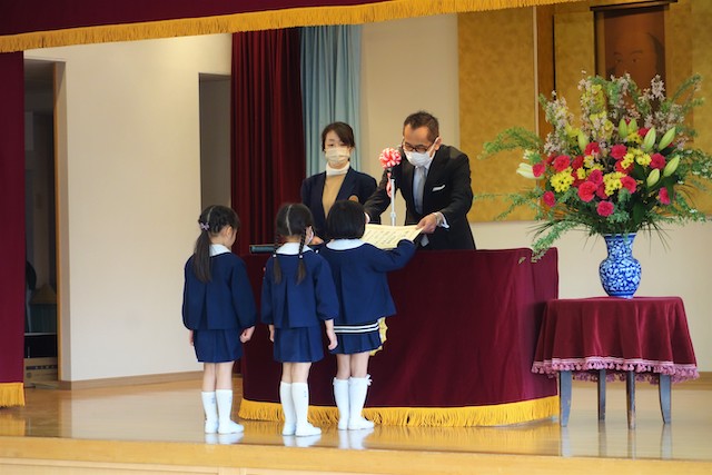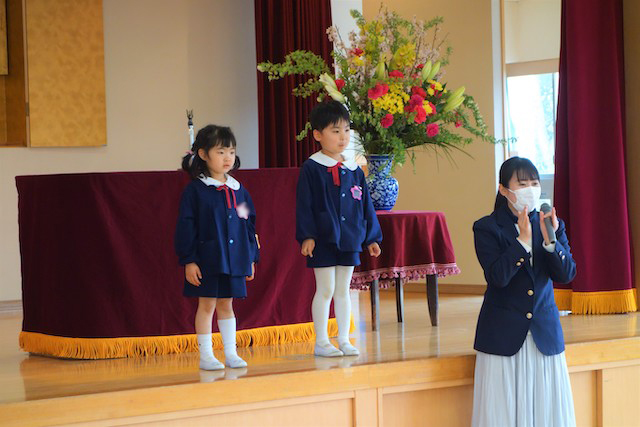 お別れの歌や言葉を聞いてるととても寂しいですが、これから小学校へ巣立つ締めくくりとして胸をはって式に参加します。