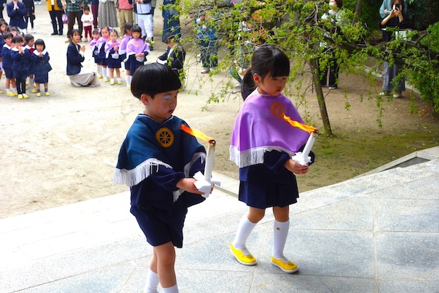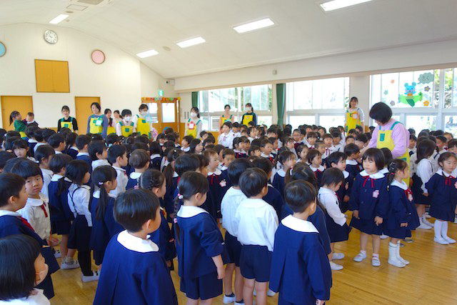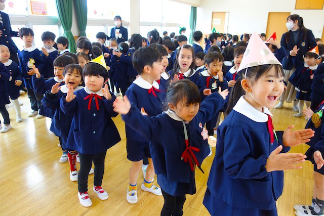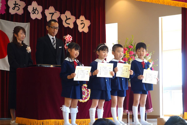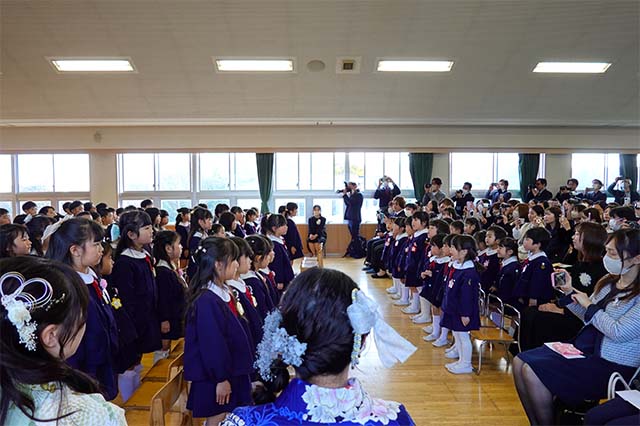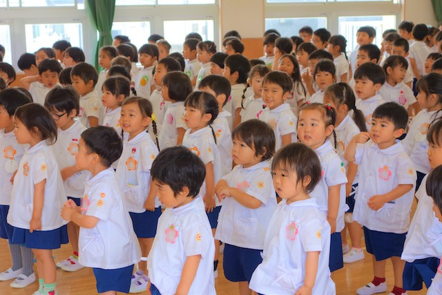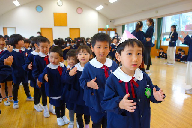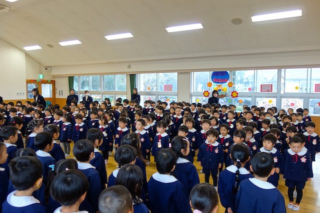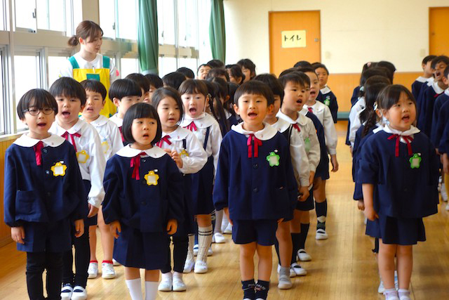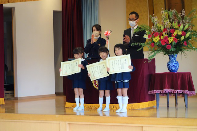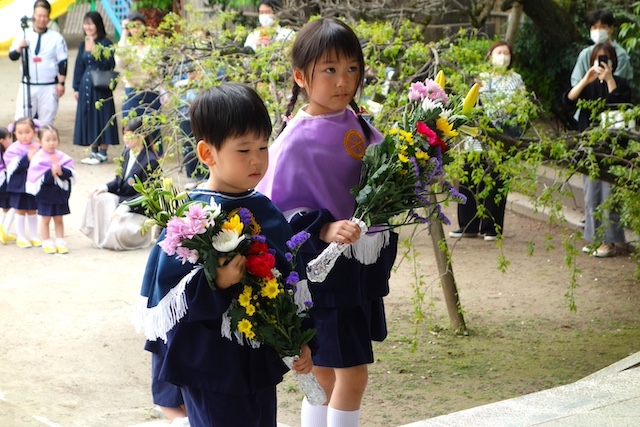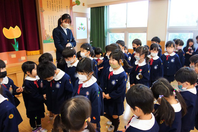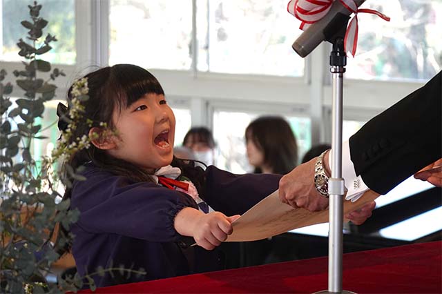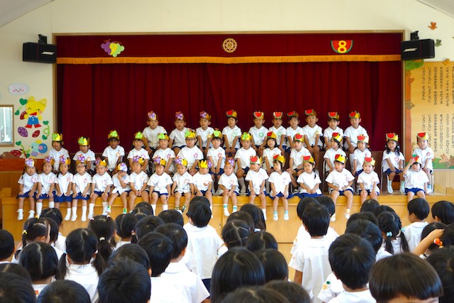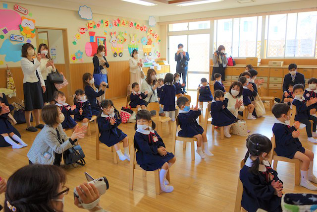 お別れの歌や言葉を聞いてるととても寂しいですが、これから小学校へ巣立つ締めくくりとして胸をはって式に参加します。