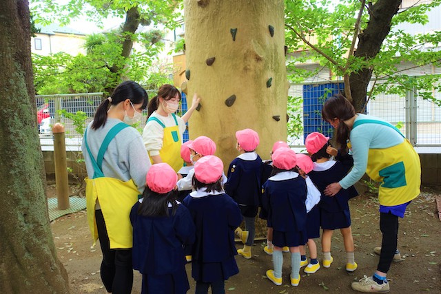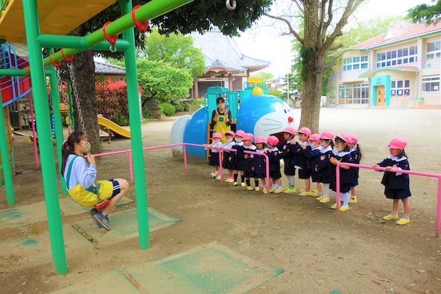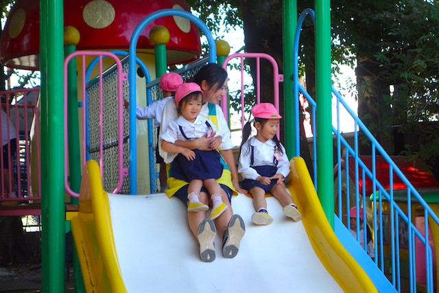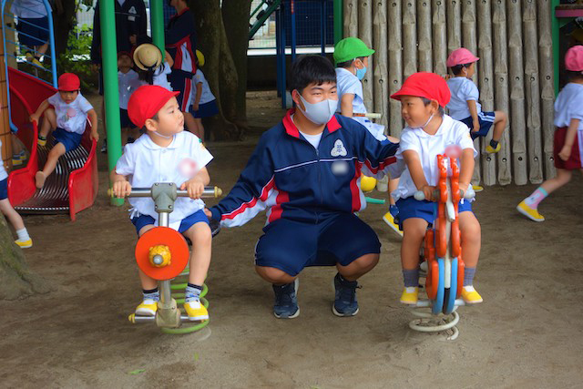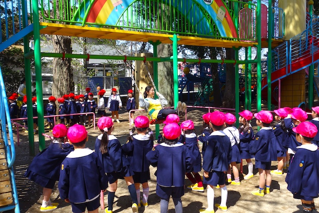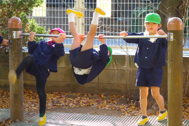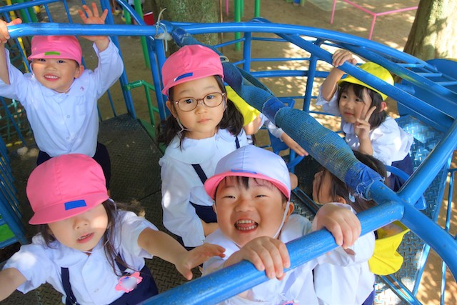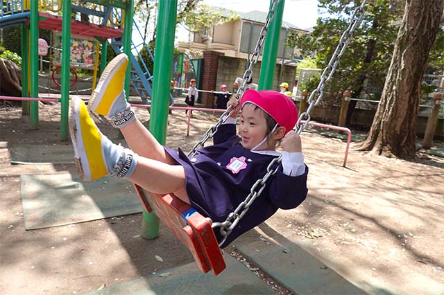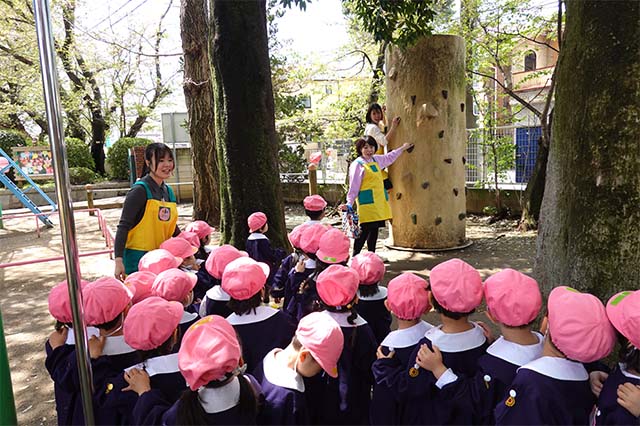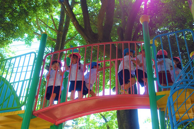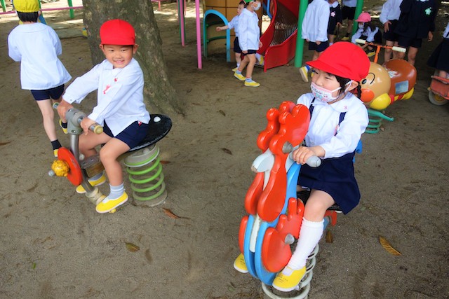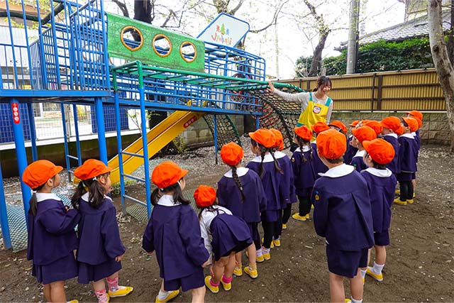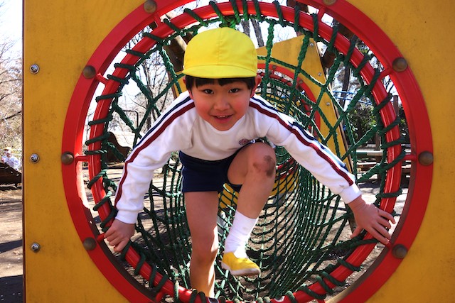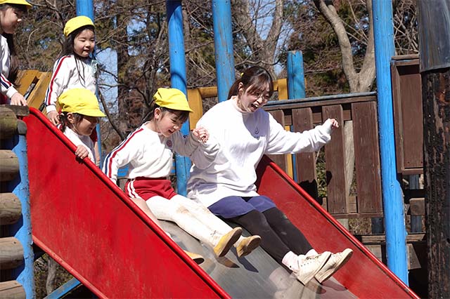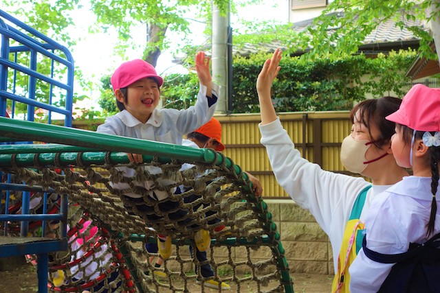 その他コンビネーション遊具も人気で、たくさんの子ども達が順番に並んで遊んでいます。特に年長は年少の手をとり、遊んでくれています。