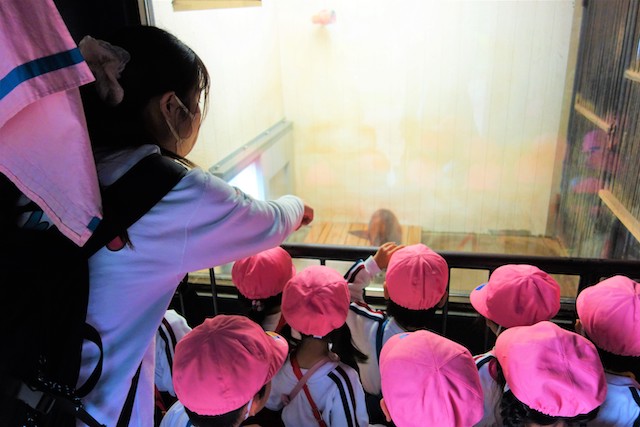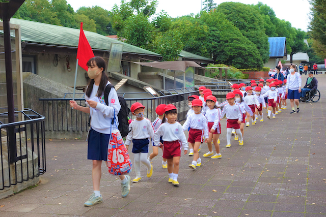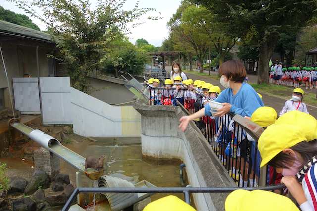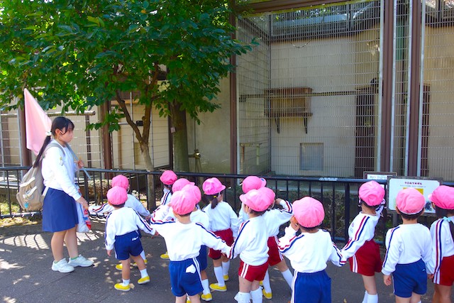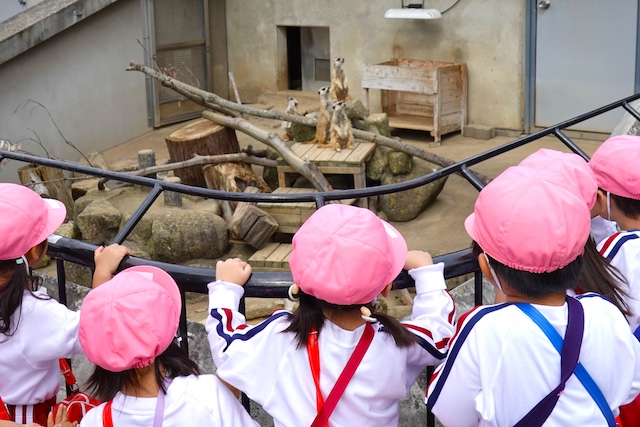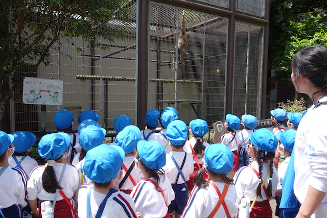- 園児だけで園バスに乗って大町動植物園へ行きます。公共の場での約束や挨拶も学びます。