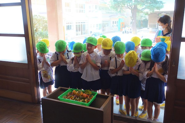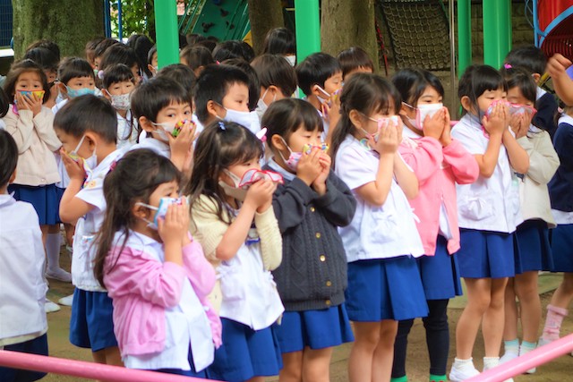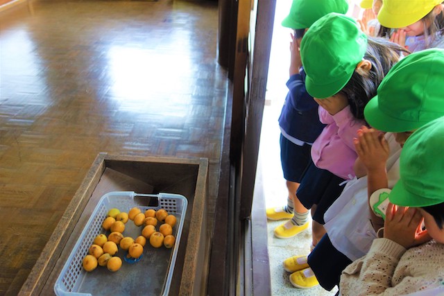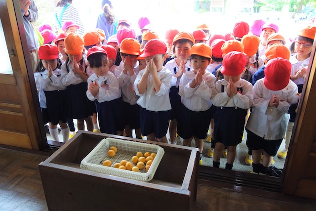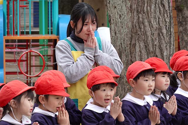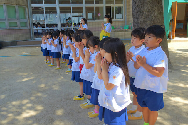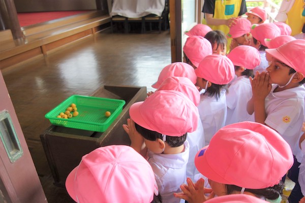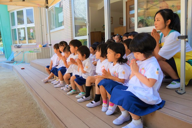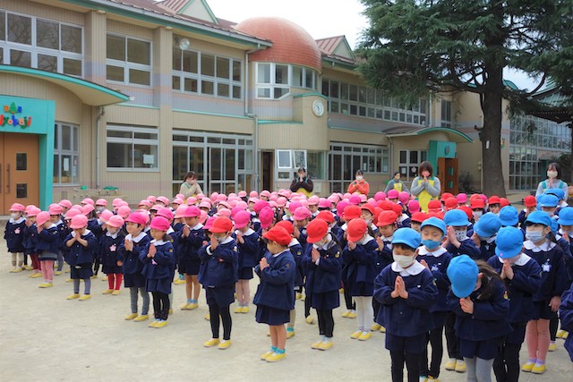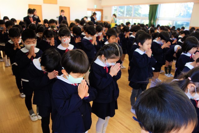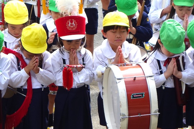 演奏後、きく組さんは無事に運動会を終えられたことをのの様に手を合わせて報告しました。