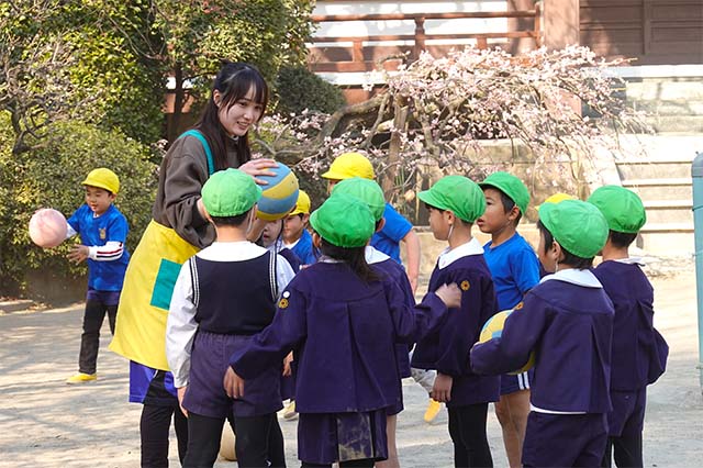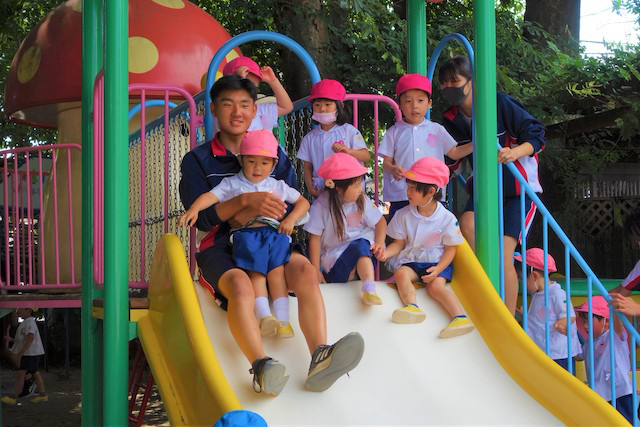 クラスの子ども達と遊ぶ事が多いです。天気の良い日はやはり外遊びが一番です。