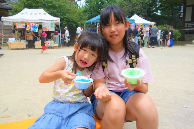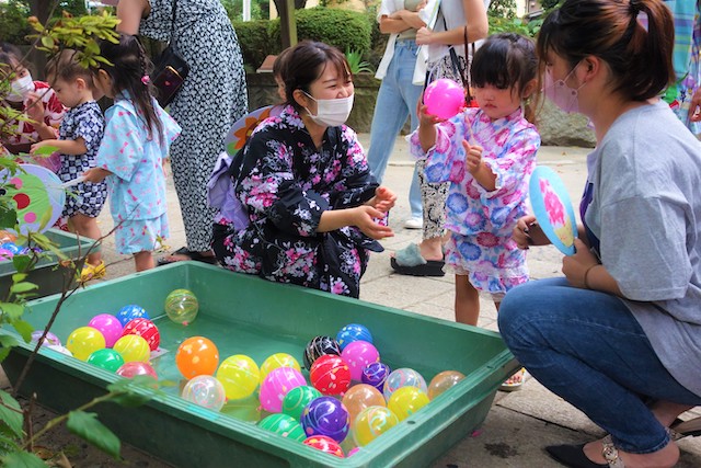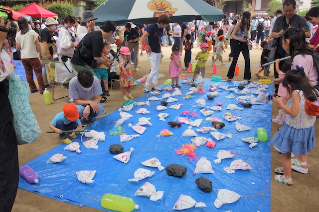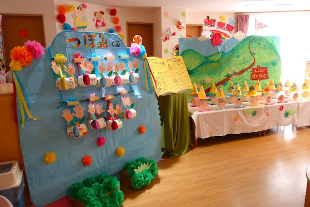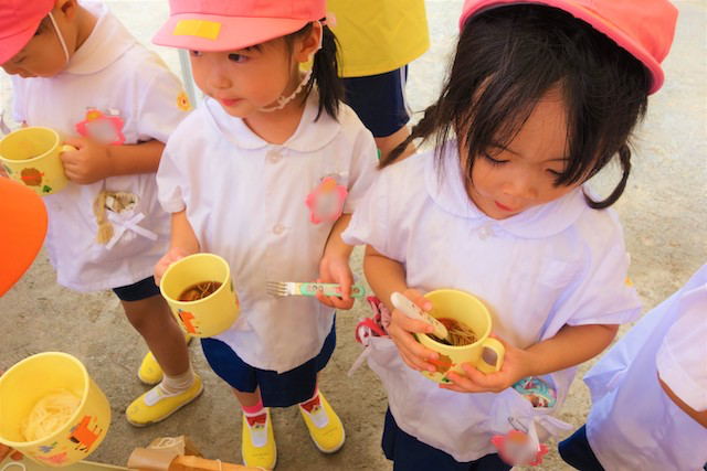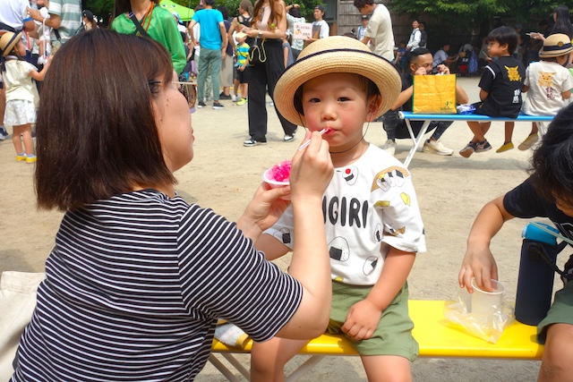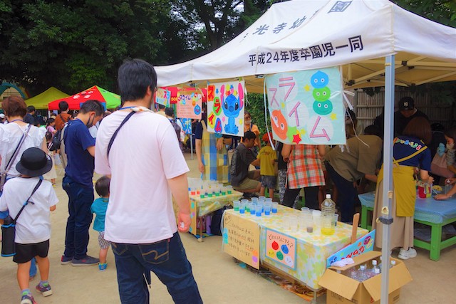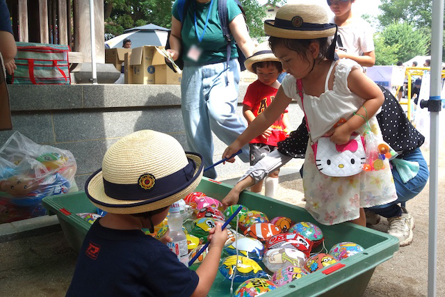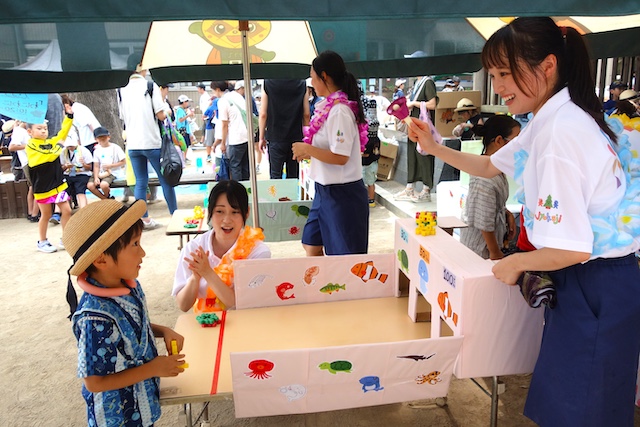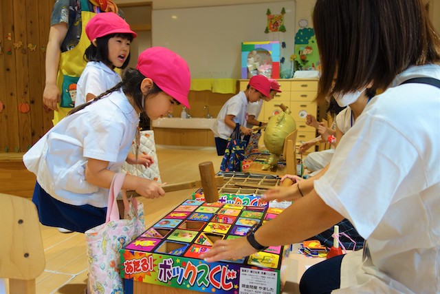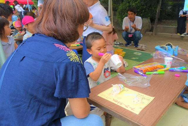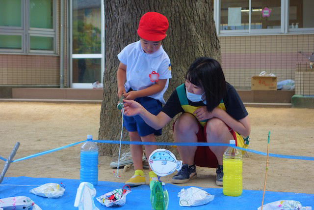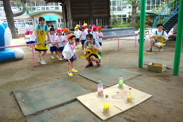 手作りおもちゃや焼きそば、フランクフルト、わたあめ、ヨーヨー等、幼稚園が楽しいお祭り会場に変身します。