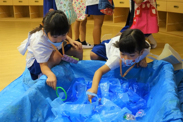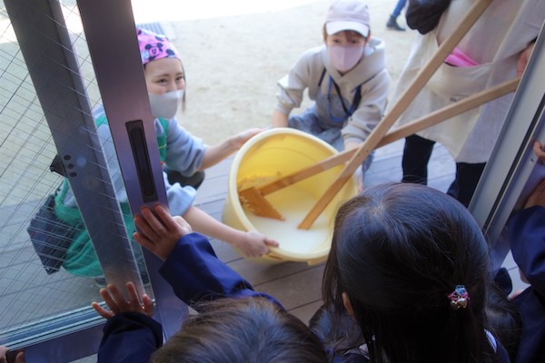この日は初めて幼稚園に移動水族館の「たっちんぐぷーる」さんが来てくれましたよ~!