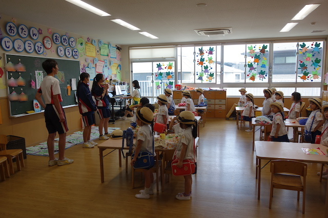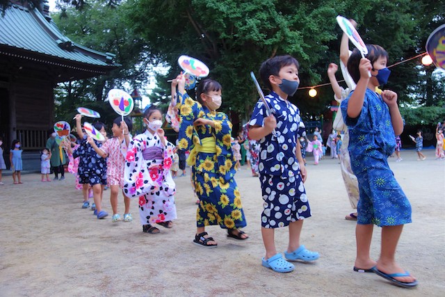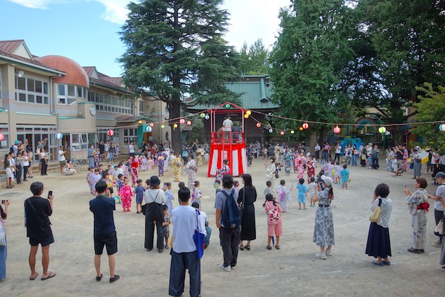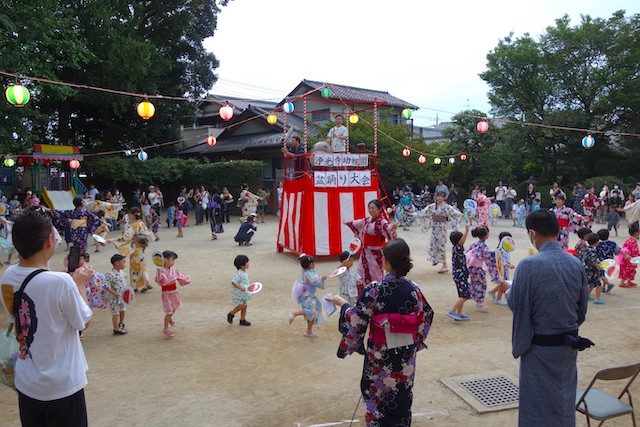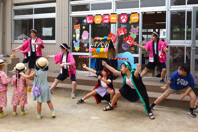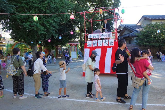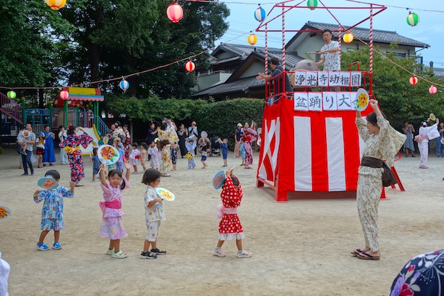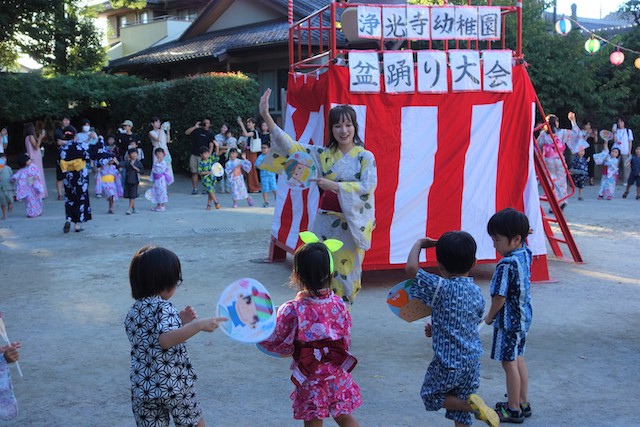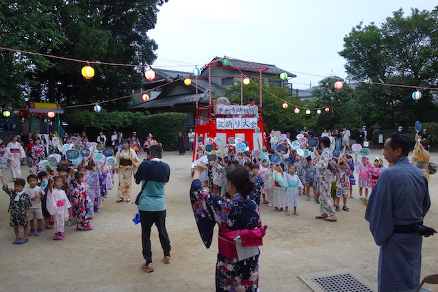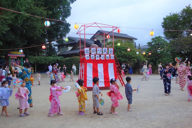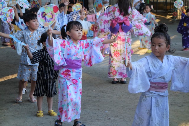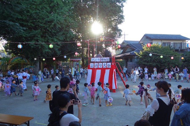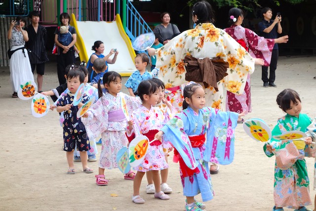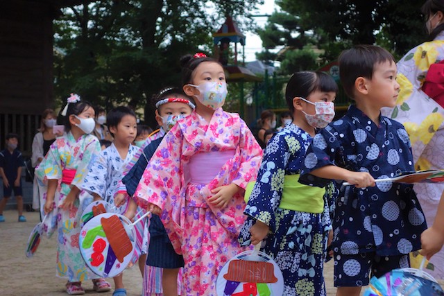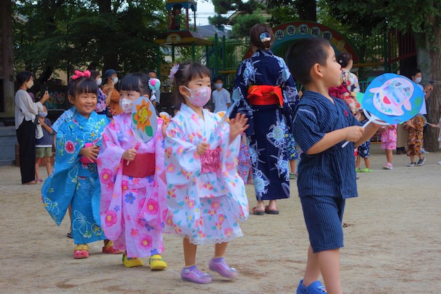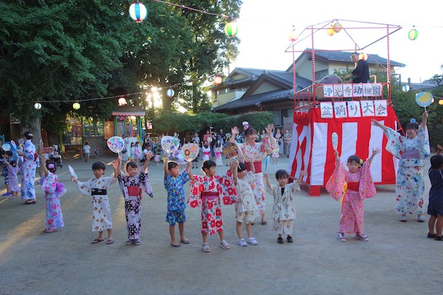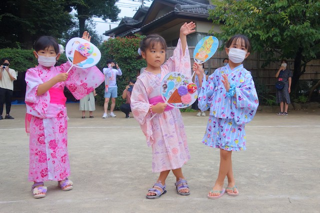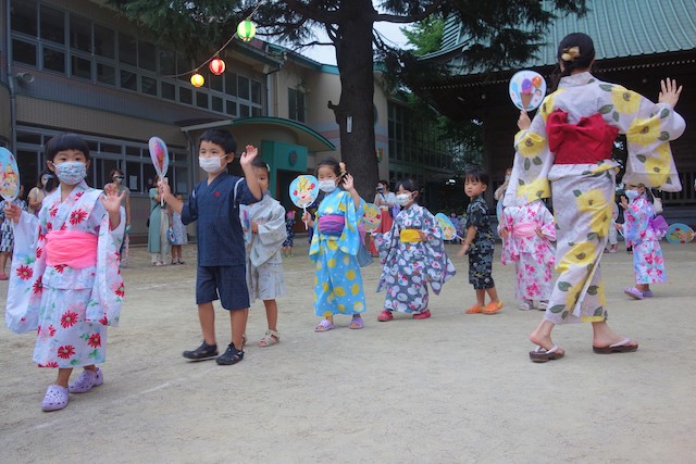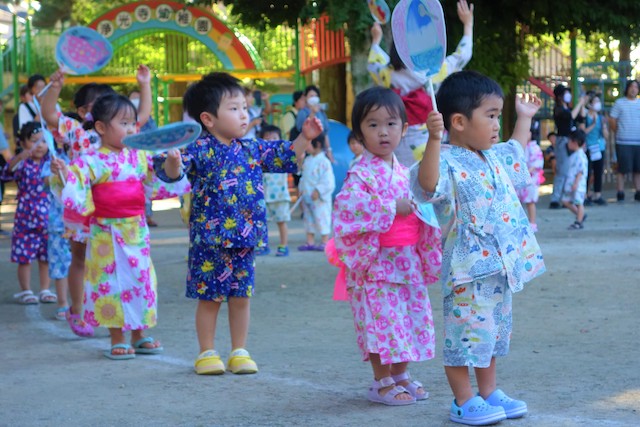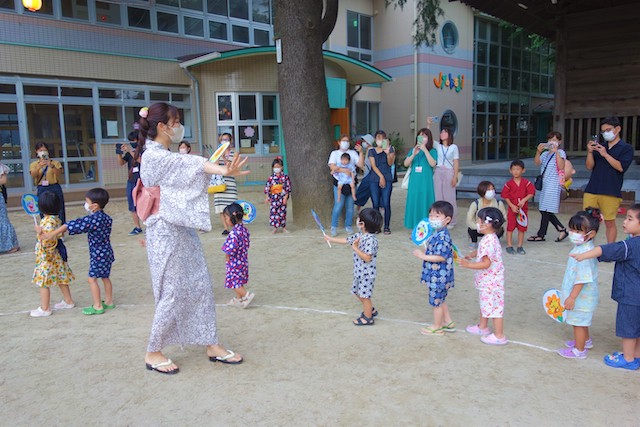 この時は全園児がゆかたを着て盆踊り大会も行います。