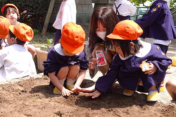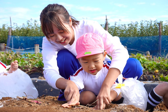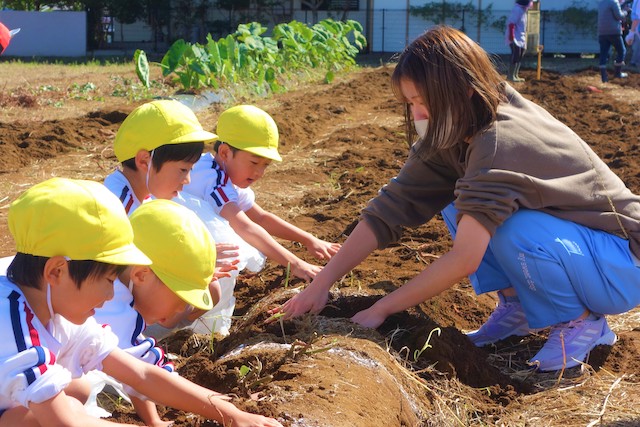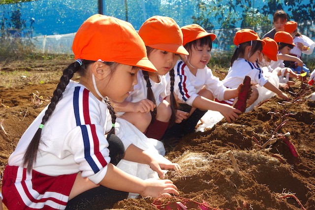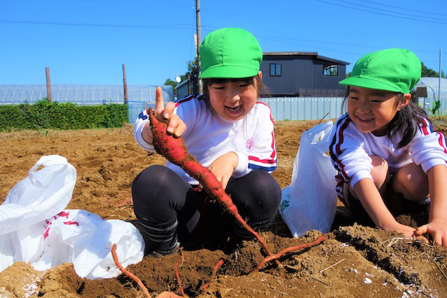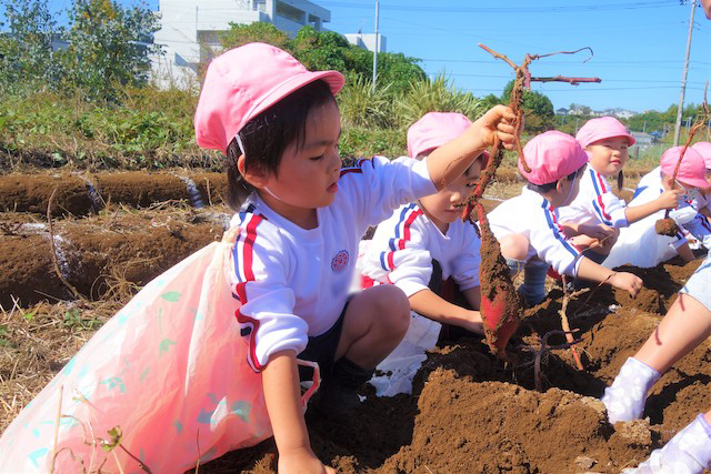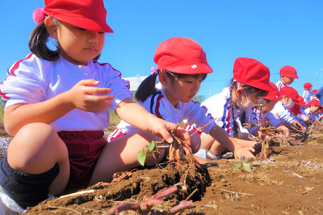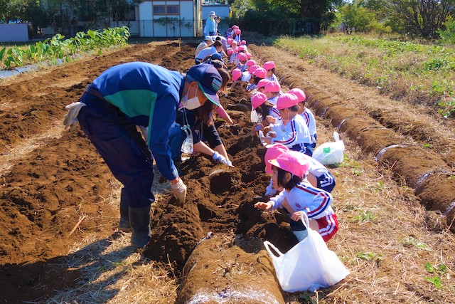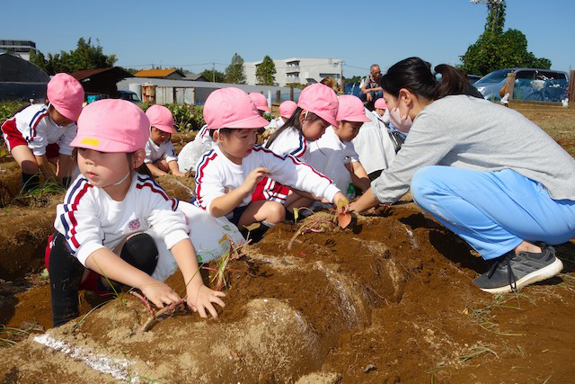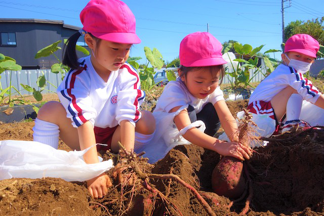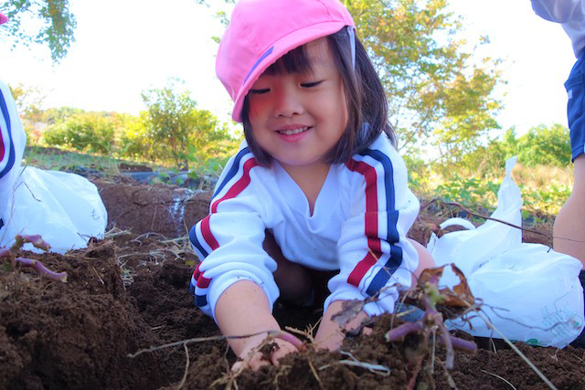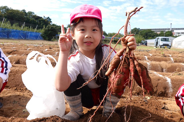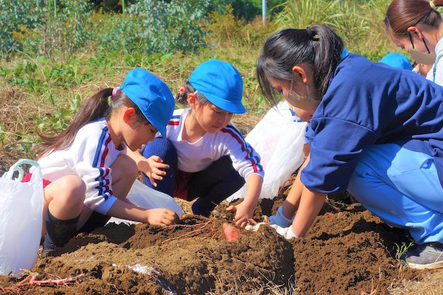 - 土の感触と収穫の喜びを味わいます。掘ったおいもを焼きいもや蒸かしいもとして食べるととても楽しいです。