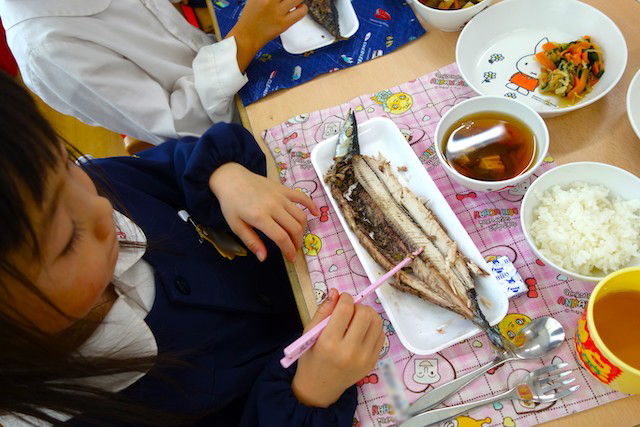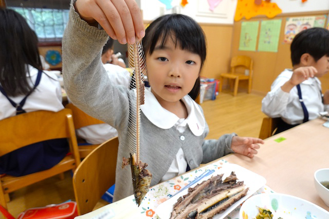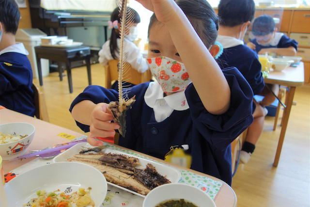 その後きれいに骨が取れたサンマを食べました(●^o^●)2025年 10月15日鼓笛隊披露