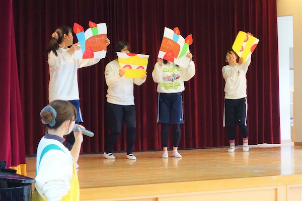 お誕生日の子ども達は嬉しそうに言葉や歌やカードのプレゼントを貰っていました。