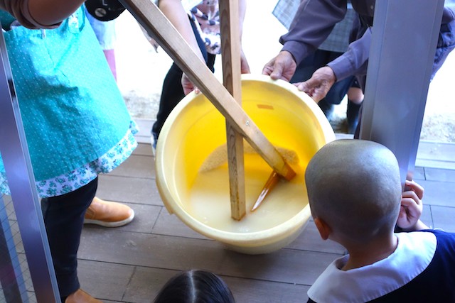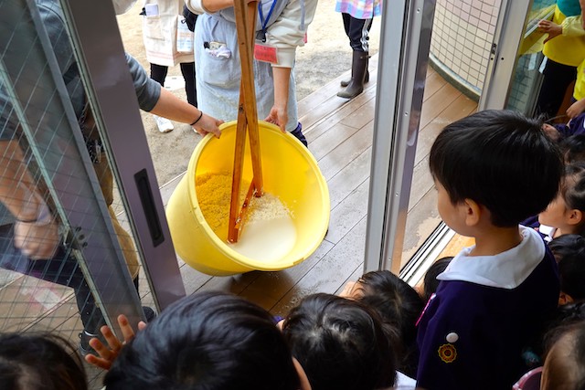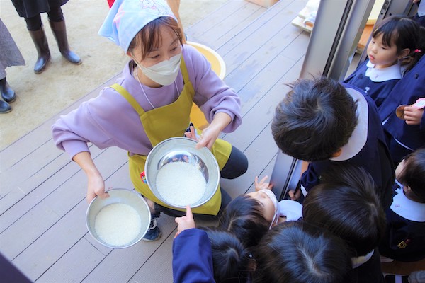 当日、協力してくださった保護者の皆様方、ありがとうございました!2025年 11月10日もち米研ぎ見学