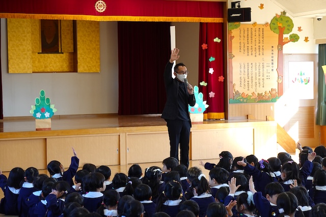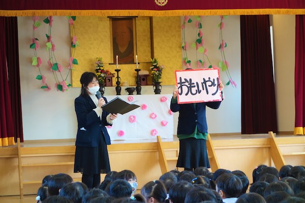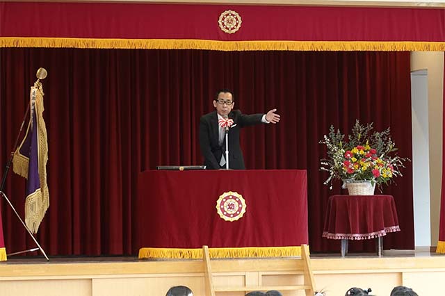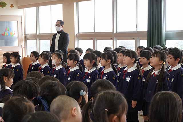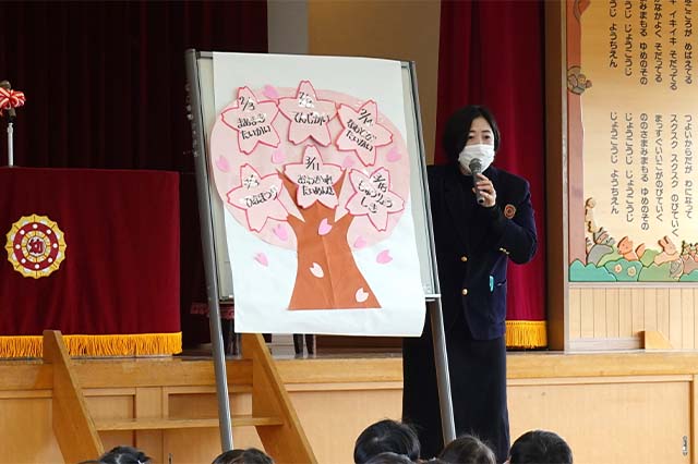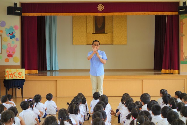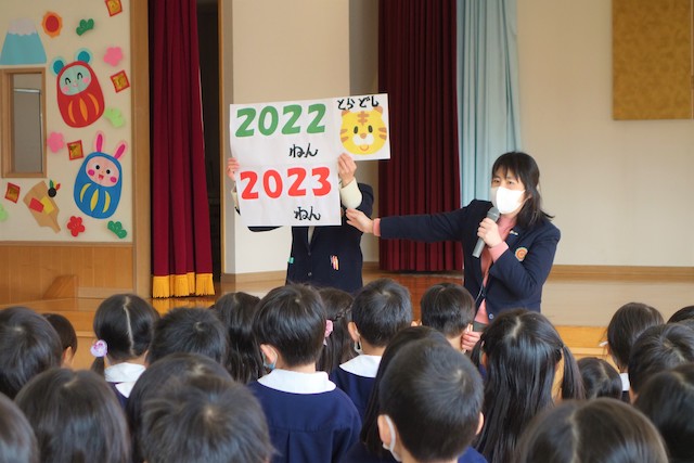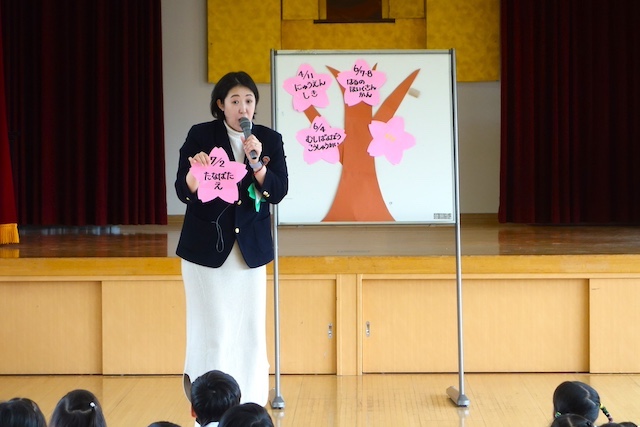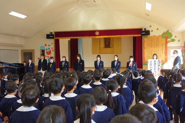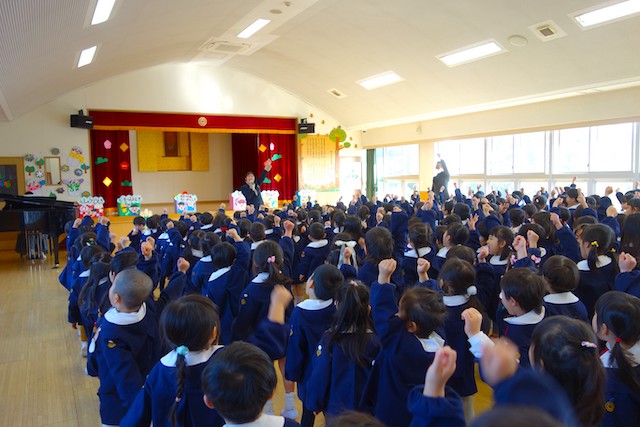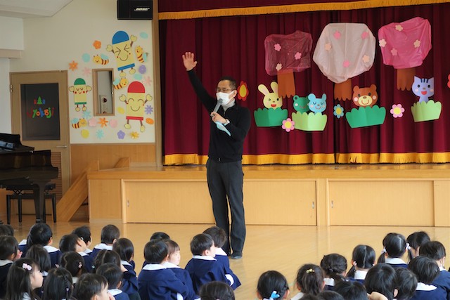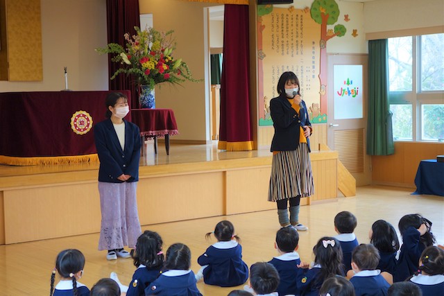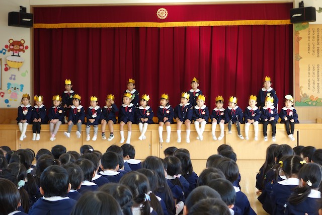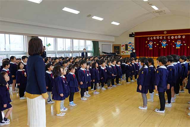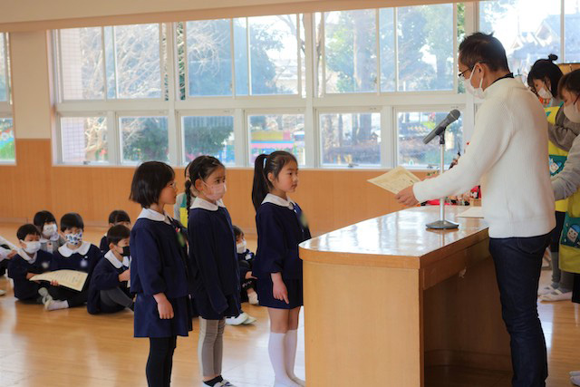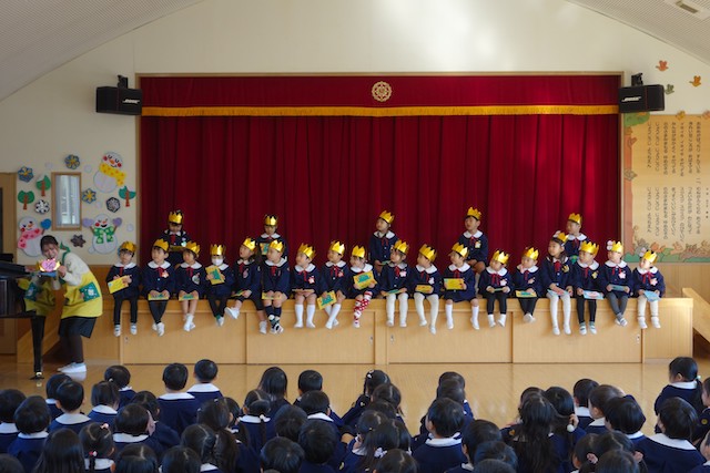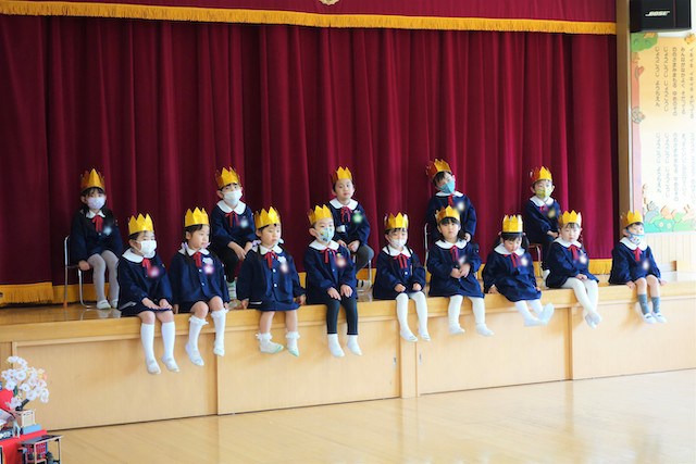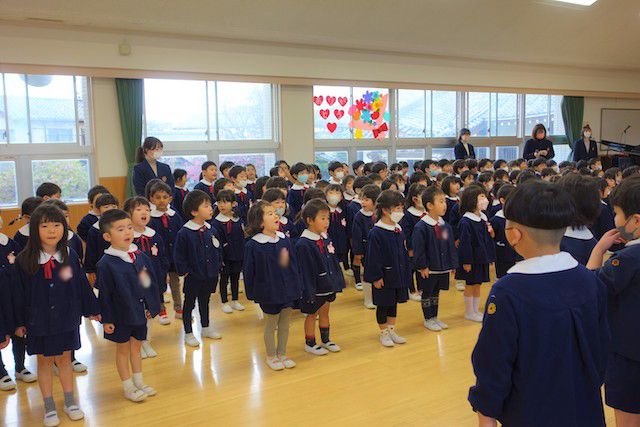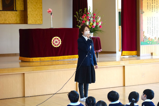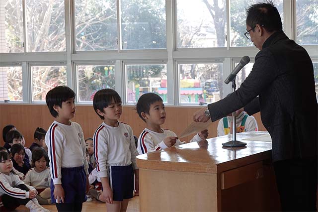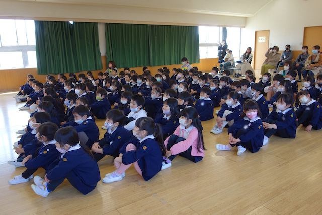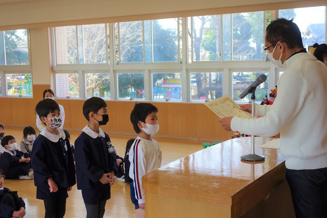 - 進級する子ども達のお祝いとまとめの式です。