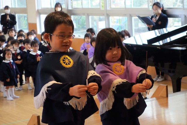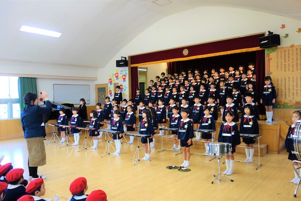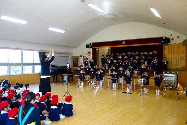 この日はきく組さんが、もも・うめ組さんのために特別に鼓笛隊を披露しました!