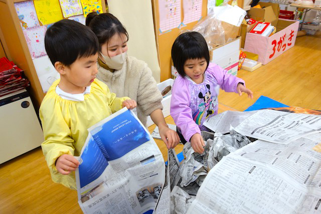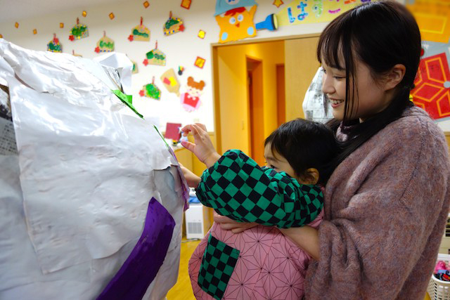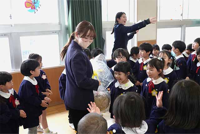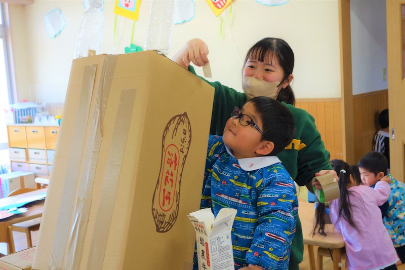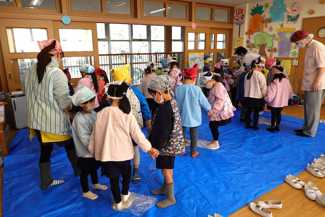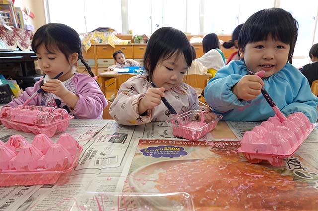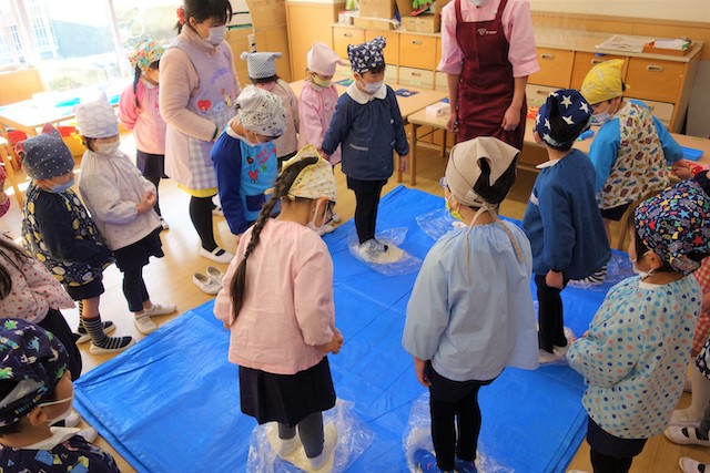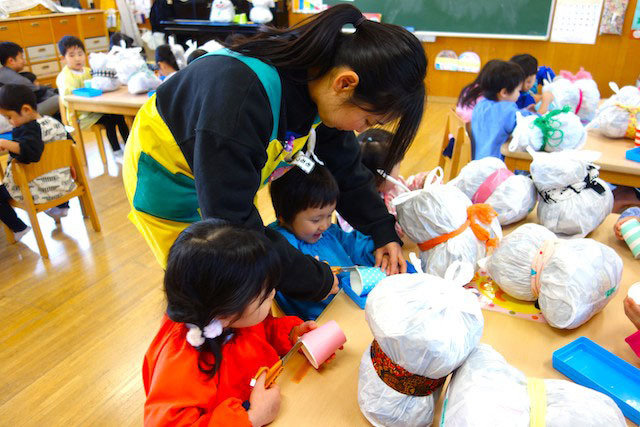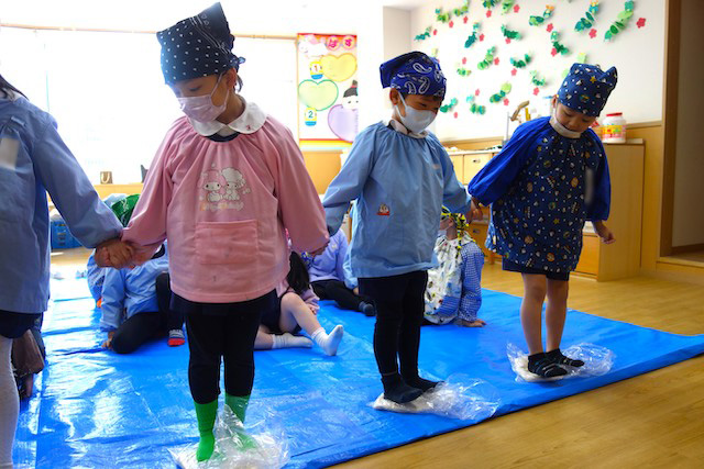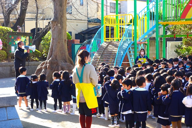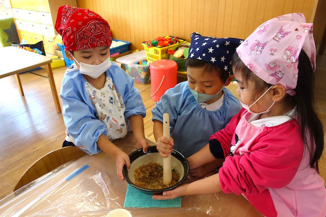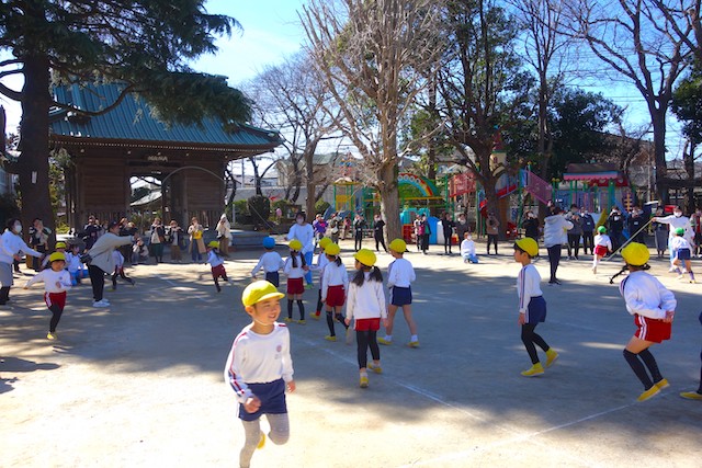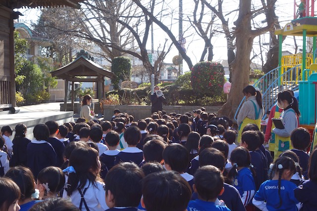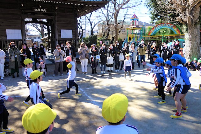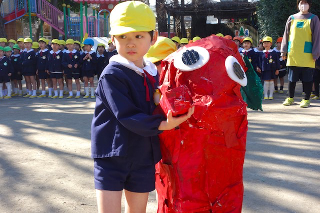 - 全園児で豆まきをすることで心の鬼をはらいます。