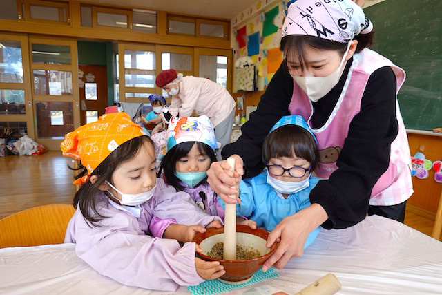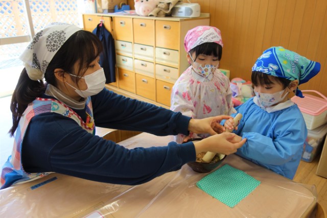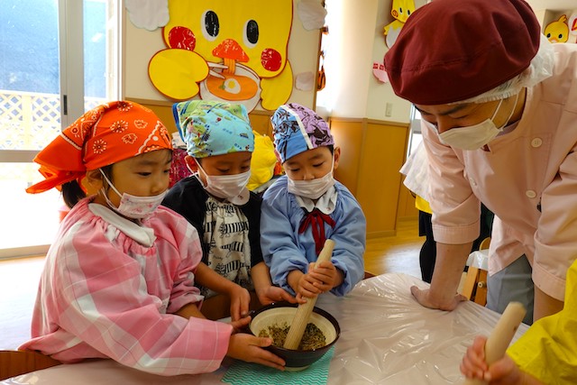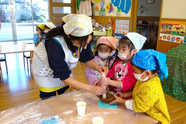 つきたてのお餅を食べている様子は「食育について」をご覧ください。