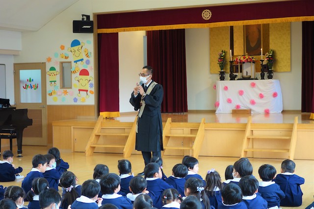 - 仏教園ですが、この日はサンタクロースが来てくれるので、子ども達もとても楽しみにしています。