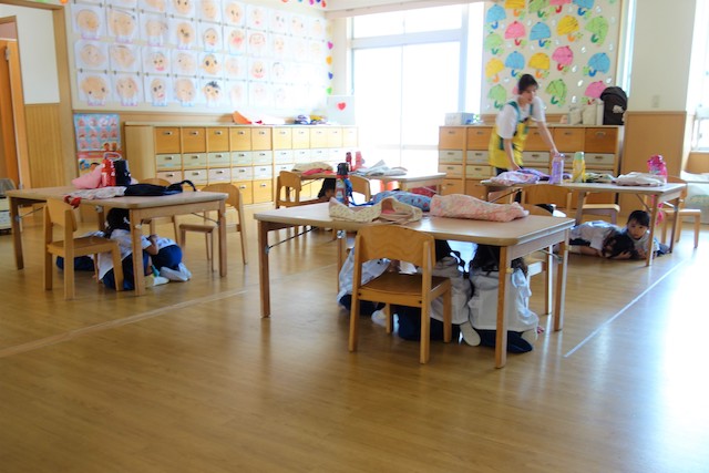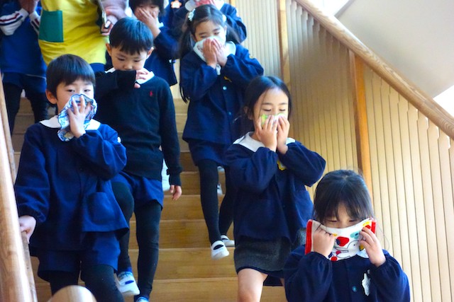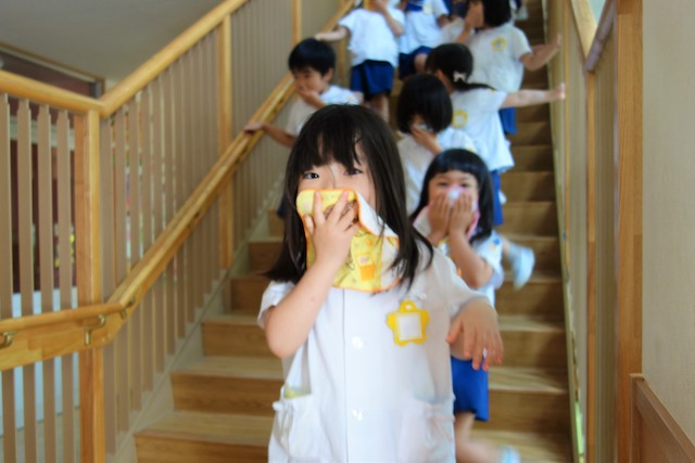 避難の仕方や、ハンカチをどこでどう使うのかは2回目ですっかり身につきます。