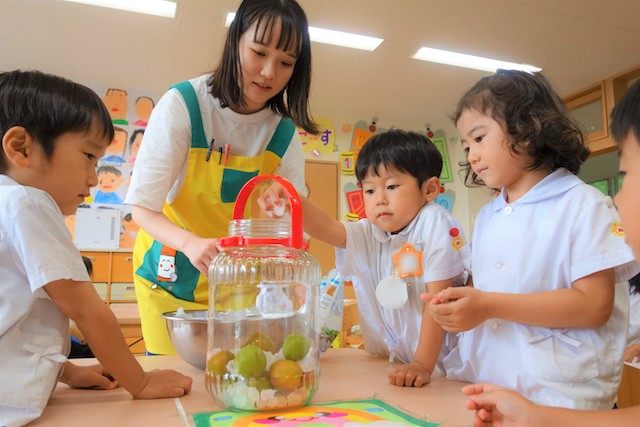 その日のカリキュラムに沿っての保育が始まります。日々工夫された色々な活動があり、子ども達の成長を促します。