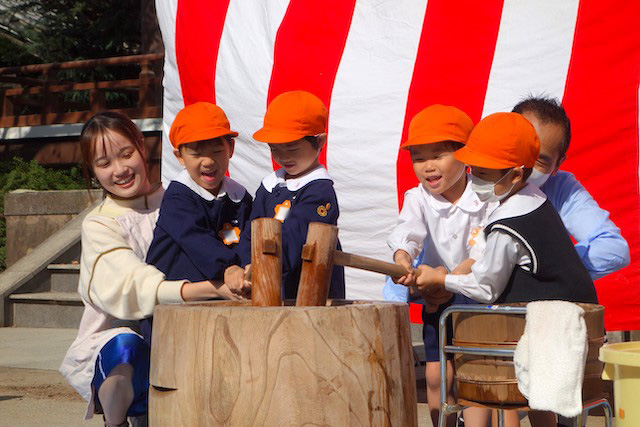 今日はみんなが楽しみにしていたもちつき大会です!